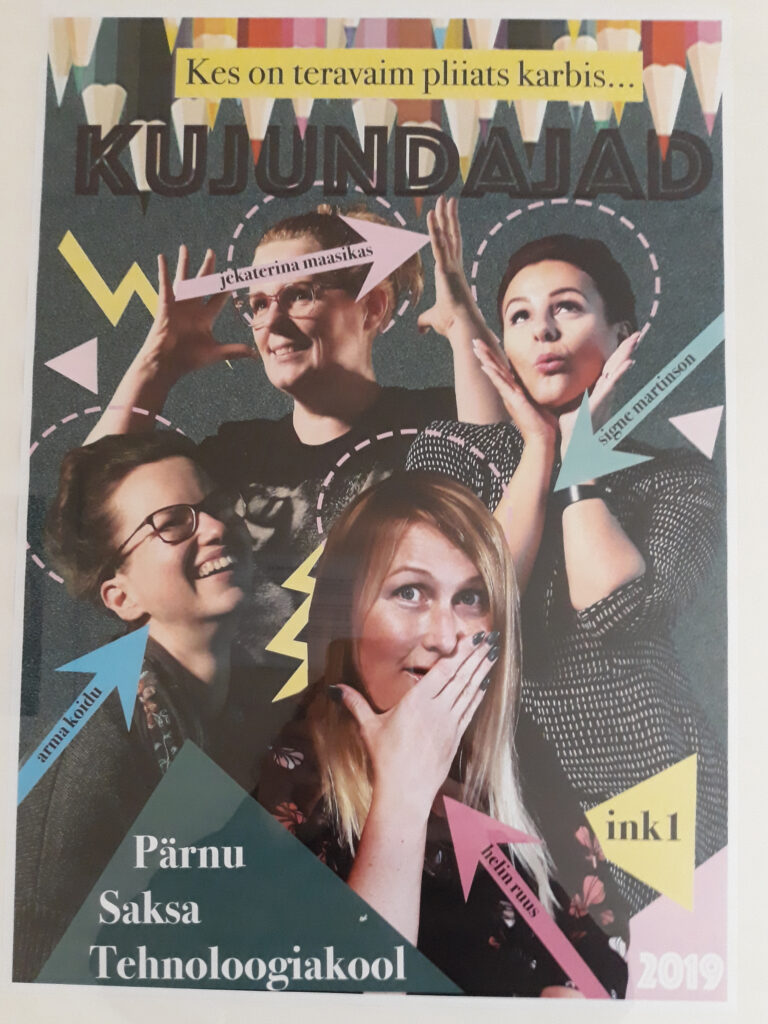 Pärnu Saksa tehnoloogiakoolis on näitus kujundajaks õppijate töödest. Jaan Lehismetsa plakat.