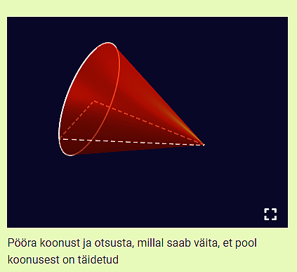 Opiqu koonus, mida pöörates saab õpilane jälgida, kuidas vee tase selles muutub. Fotod: Opiqu ja Foxcademy kuvatõmmised