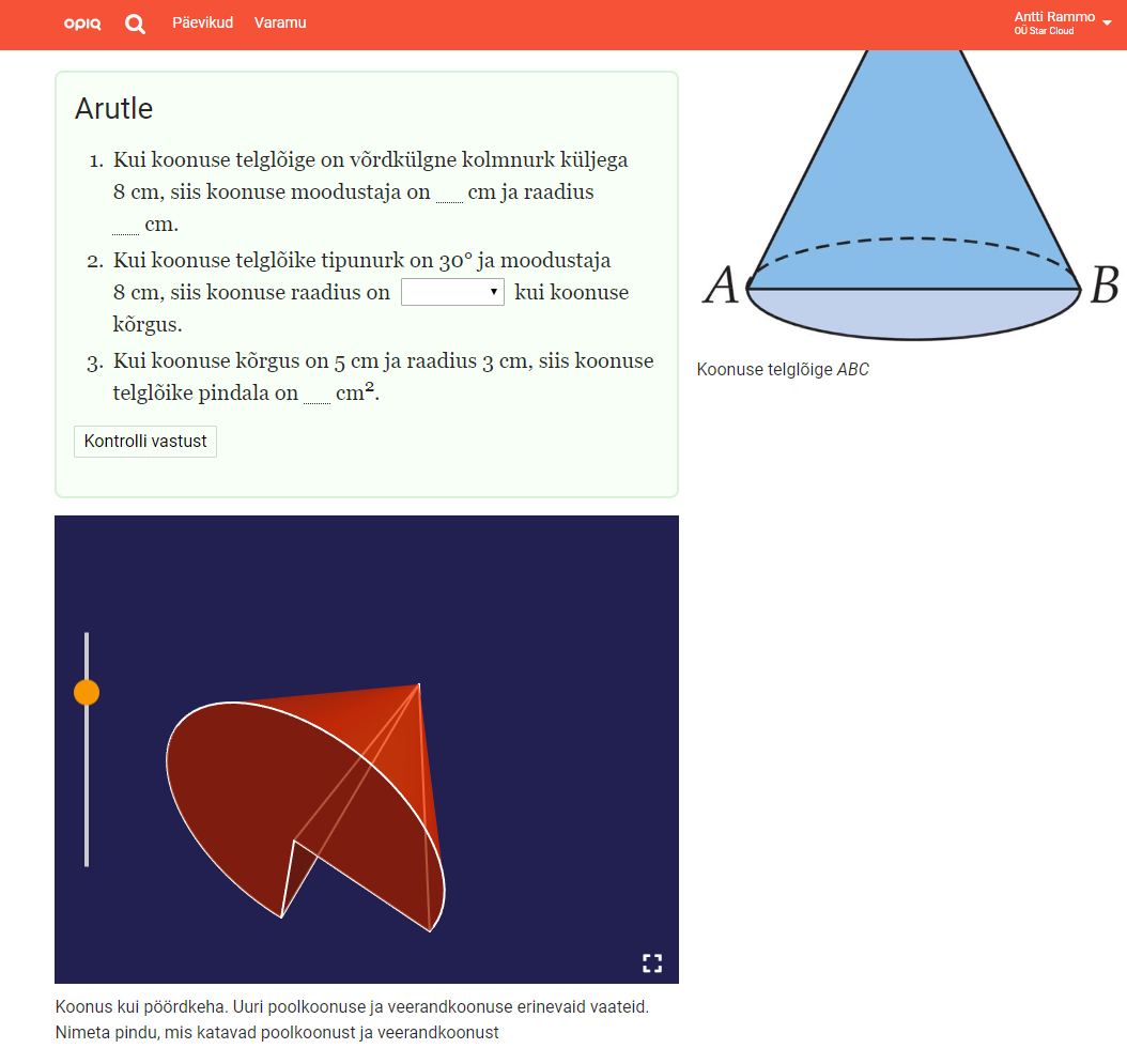 Kärt Matiisen: Et Opiqu digimaterjalides on palju pildimaterjali, tuleb hästi selgelt välja geomeetria ja stereomeetria puhul. Oleme harjunud, et geomeetriat õpitakse kehade ruumalasid arvutades, ja näinud, et õpilased on tihti hädas, sest nad ei suuda ruumilisi kehi piisavalt hästi ette kujutada. Seepärast ongi Opiqu digimaterjalides pildimaterjali mitu korda rohkem kui paberõpikus. Kui õpilased õpivad põhikoolis ruumilisi kehi tähelepanelikult vaatlema ja analüüsima, siis on see hea aluspõhi gümnaasiumis stereomeetria õppimiseks.