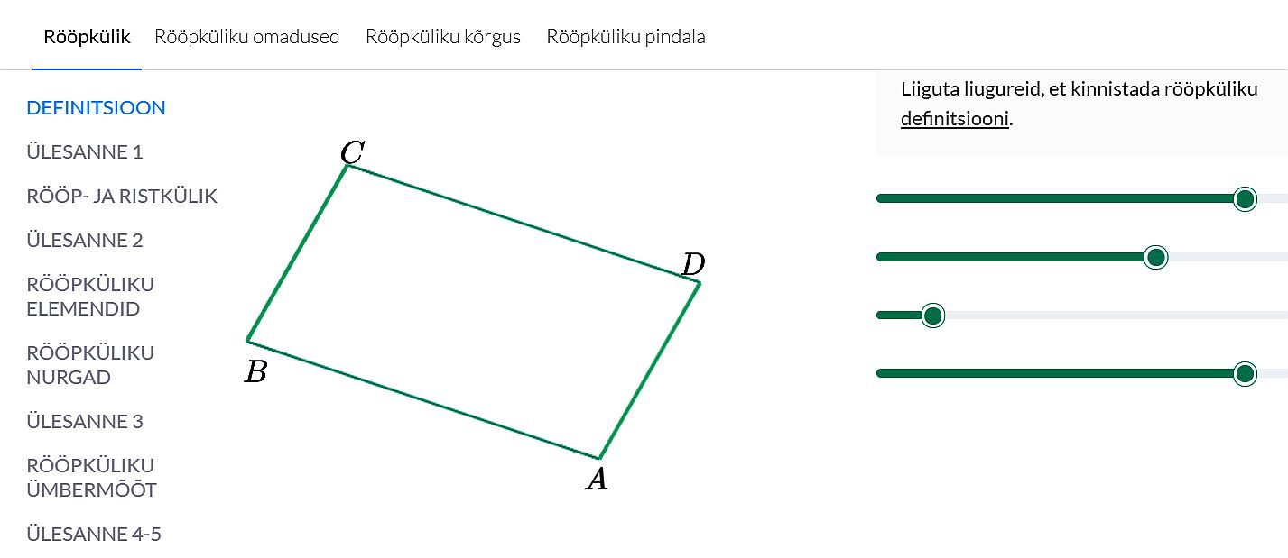 Foxcademy rööpkülik, mille kuju saab õpilane liugurite abil muuta. Selgub, et vastasküljed jäävad kogu aeg paralleelseks.