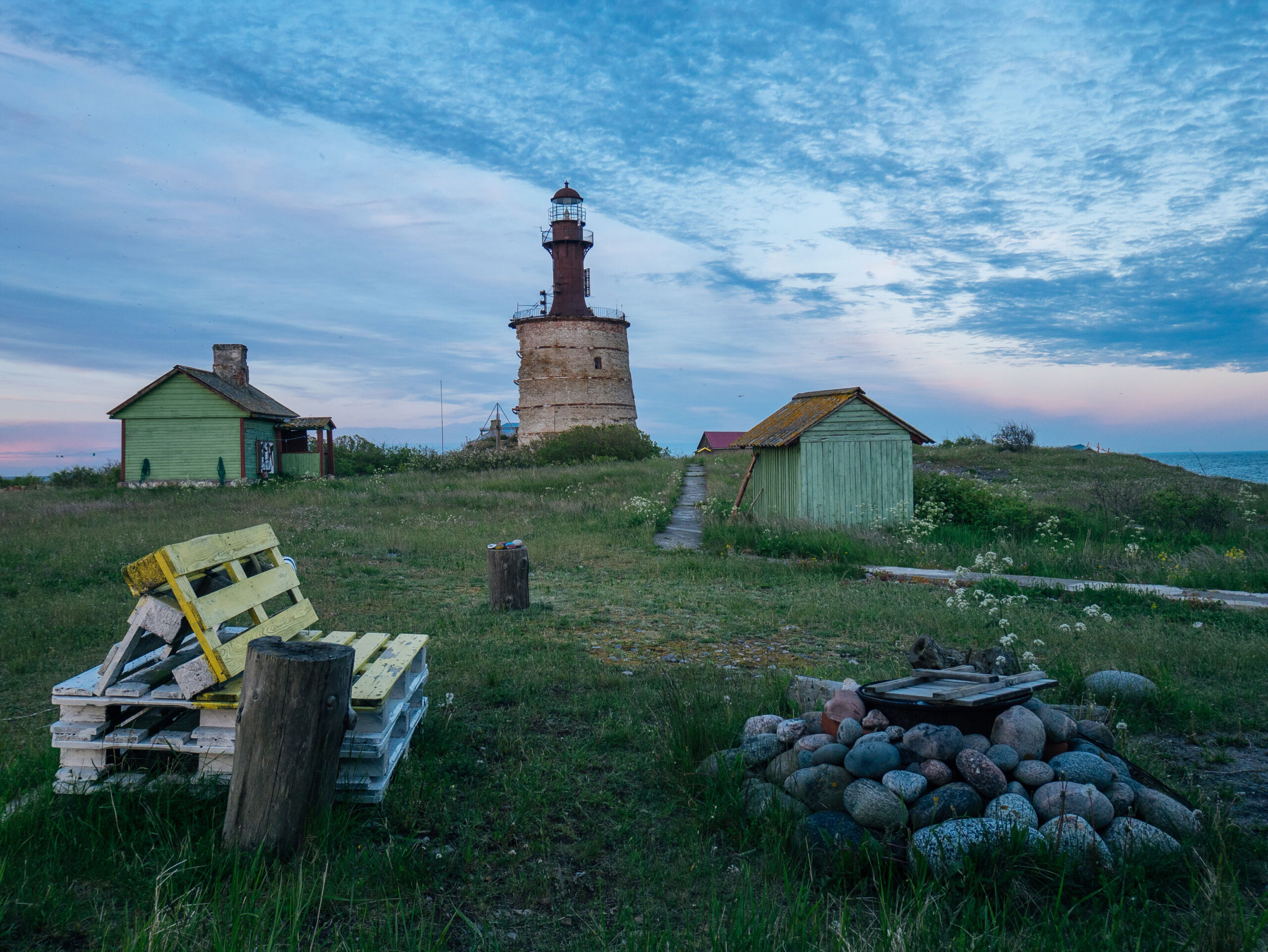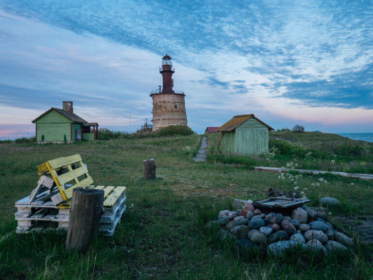 Keri saarel on pikkust ühtpidi umbes 80, teistpidi 400 meetrit, ümberringi loksub meri. Elasime endises majakavahi hoones, mille teise otsa on sisse seatud külalistoad. Veel on saarel sauna- ja kaevumaja, paadi- ja puukuur, kinomaja, generaatorimaja, ilmajaam ning hästi palju kirsipuid, tõeline kirsimets! Ja muidugi tuletorn ise, mis ehitati tsaar Peeter I korraldusel sellele Eesti ühele põhjapoolsemale väikesaarele 1719. aastal ja mis alguses oli puidust.