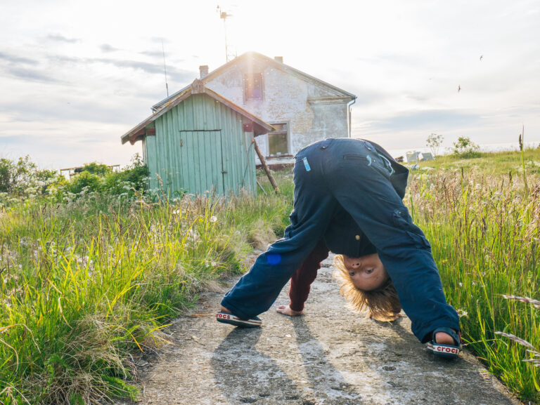 Pojal läks kohanemine isegi lihtsamini kui meil. Ta on sedasorti laps, kellega oleme hästi palju matkanud ja rännanud ning tal on loodusega head suhted. Kui ta kodus oli harjunud veetma aega ka sõprade, televiisori ja arvutimängude seltsis, siis nüüd oli ta ühtäkki koos ema-isaga saarel, kus seda kõike polnud, isegi poodi mitte. Väga kiiresti oli näha, et internetti, televiisorit ega koormate viisi mänguasju ei olegi vaja: lennuki saab kokku panna ka takjatest ning kaldale uhutud lauajuppidest ehitada laeva, millel sõidavad kivikestest reisijad. Kui luua sobiv keskkond, kus laps saab segamatult olla laps, hakkab tema loovus tööle.