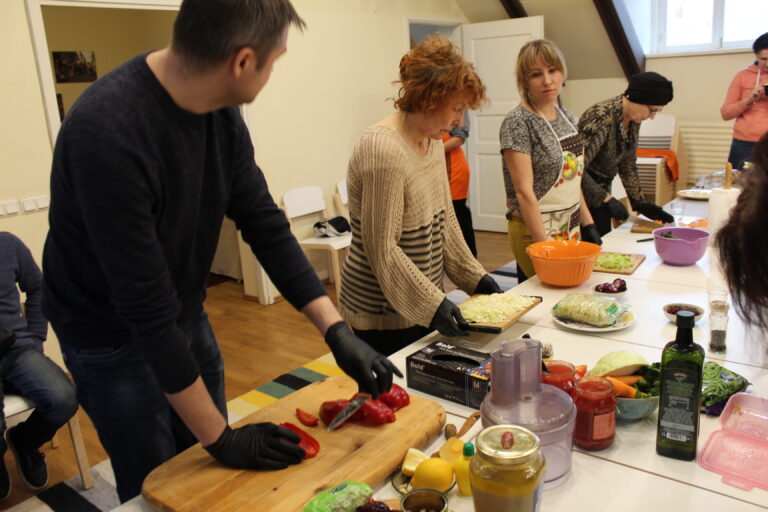 Laupäeviti koguneb üks seltskond Pärnu linna keskraamatukogu rippsaali suhtlusklubisse Integratsiooni Sihtasutuse algatatud Eesti keele maja keeleõppe kohvikusse.