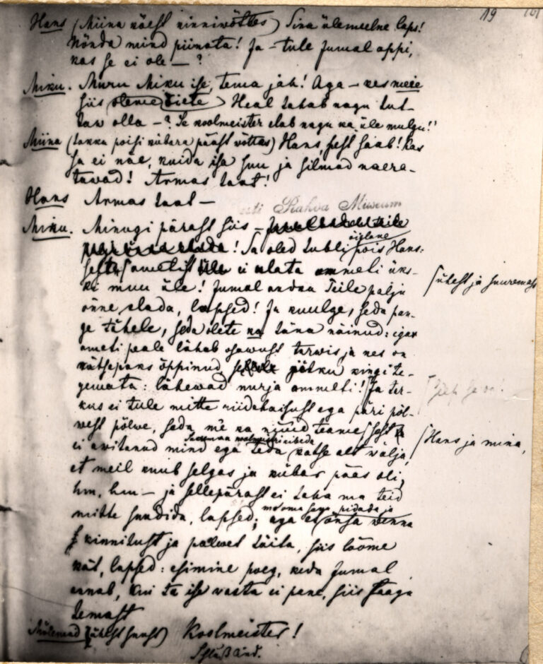 Säilinud on Lydia Koidula näidendi „Saaremaa onupoeg“ käsikiri, mille autor on oma käega kirja pannud.