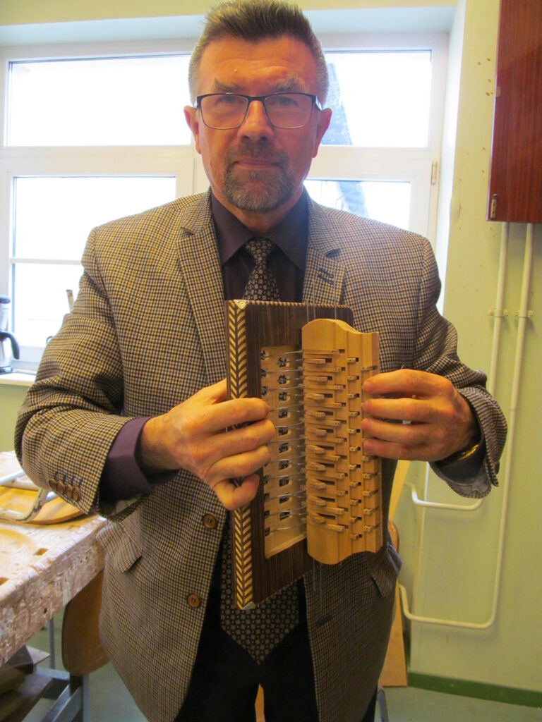 Direktor Mati Sutt oma poolelioleva lõõtspilliga, mille tegemine on tema sõnul nagu teraapia.