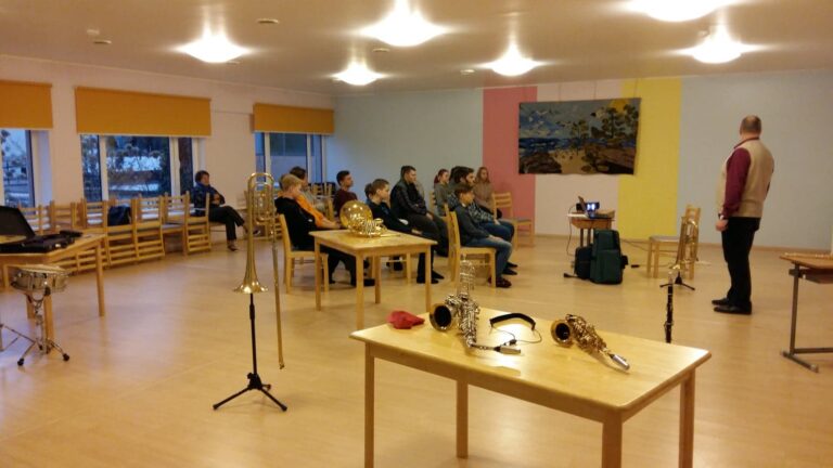 Sel viisil toimub pilliõpe 2., 4 ja 5. liitklassi muusikatunnis, kus kokku on kaheksa õpilast. Kohaliku muusikaõpetaja ja kooli juhtkonnaga on kokku lepitud, et sel poolaastal on neil lastel muusikaõpetuse tunni kavas tutvumine pillidega. Hindeid nad selle eest ei saa, aga keegi pole kolmapäeviti muusikatunnist puudunud. Lapsed õpivad midagi sellist, millest võiks huvi korral olla kasu kogu ülejäänud elu, arvab Põdra. Õppimiseks on õpetaja andnud oma puhkpillid. „Tegime läbi kogu protseduuri, kuidas jõutakse valikuni, et kes mis pilli võtab,“ räägib Põdra, kes peab tähtsaks õpilase oma instrumendivalikut.