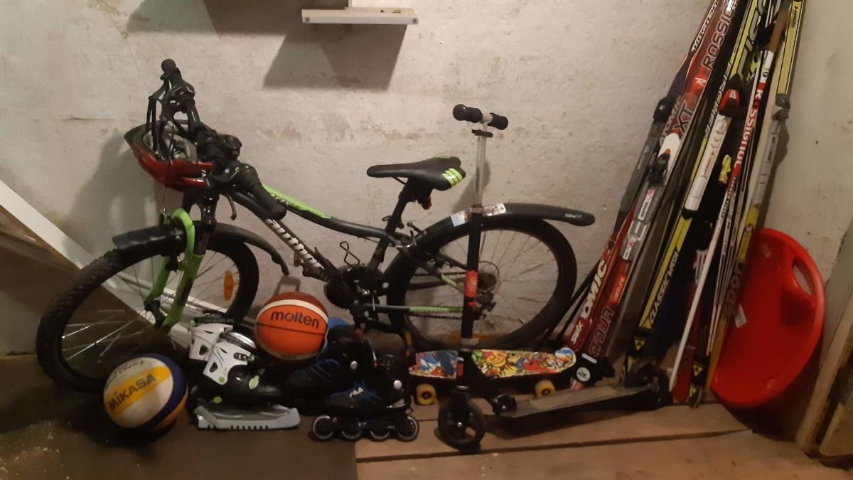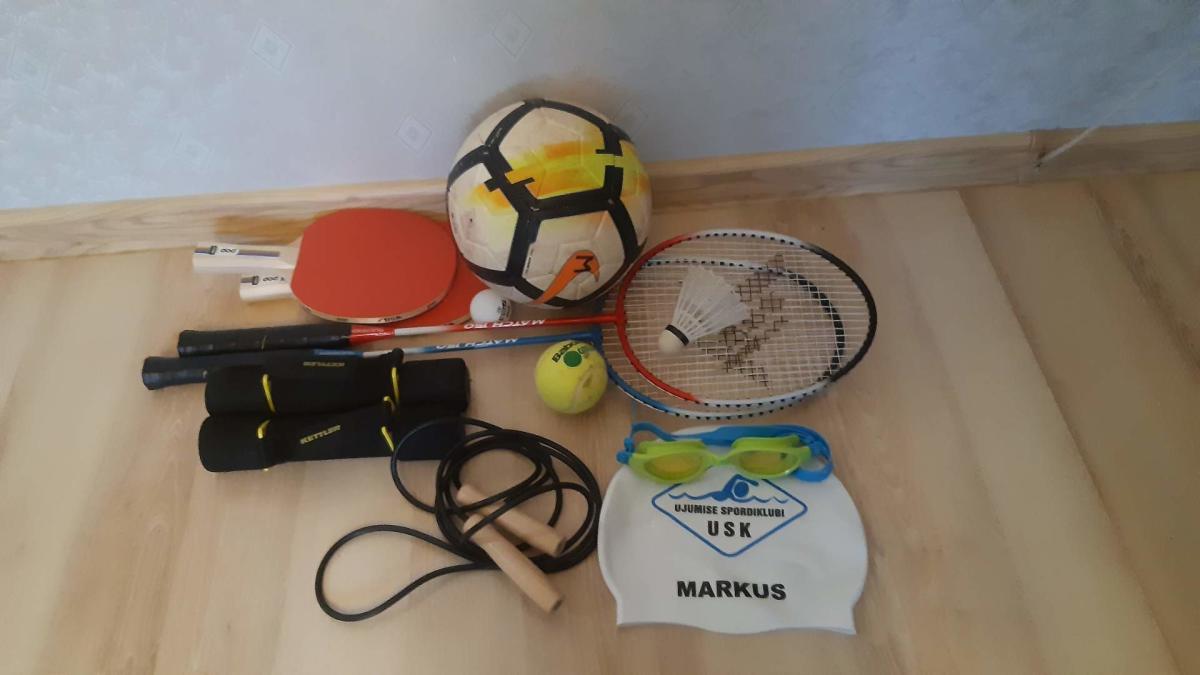 Kodune ülesanne: Kogu oma olemasolevad spordivahendid ühele fotole kokku ja kasuta neid kõiki järgmise nädala jooksul sportimiseks. Fotol õues sportimise vahendid.