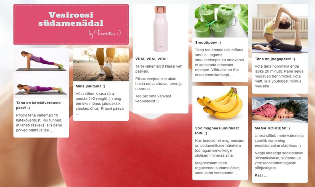 Stressirohkel ajal, mil paljud lasteaiatöötajad pidid riskigruppi kuulumise tõttu viibima isolatsioonis, oli vaja hoida personali motivatsiooni – turgutada vaimu ja maandada stressi. Tallinna Vesiroosi lasteaia kinnises FB-grupis toimusid selle tarbeks mitmed väljakutsed, mille korraldajateks olid õpetajad. Näiteks fotoväljakutse, kus haridustehnoloog postitas igal hommikul teema ja personal sai kommentaarides teemaga haakuvaid fotosid jagada. Maja tervisetiim üllatas töötajaid südamenädala raames kalendriga, kuhu oli igaks päevaks kogutud põnevaid, südamenädalale vastavaid tegevusi. Liikumisväljakutsel koguti kilomeetreid.