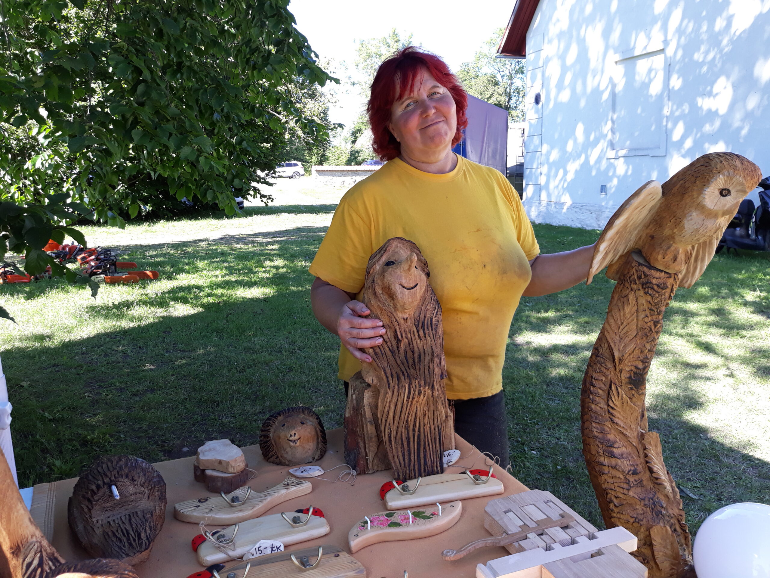 Samal ajal, kui Suuremõisa lossi pargis võisteldi mootorsaagide ja kirvestega, tegutsesid teisel pool lossi vigursaagijad, nende seas ka üks naine, Maire Põldma.