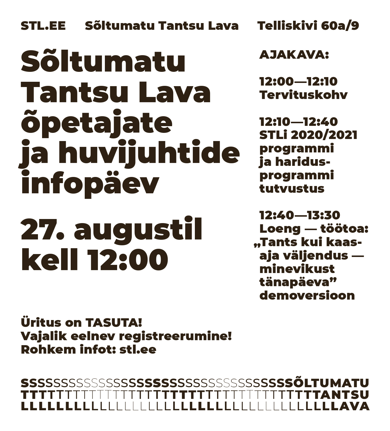 Sõltumatu Tantsu Lava programm on kättesaadav meie kodulehel stl.ee.