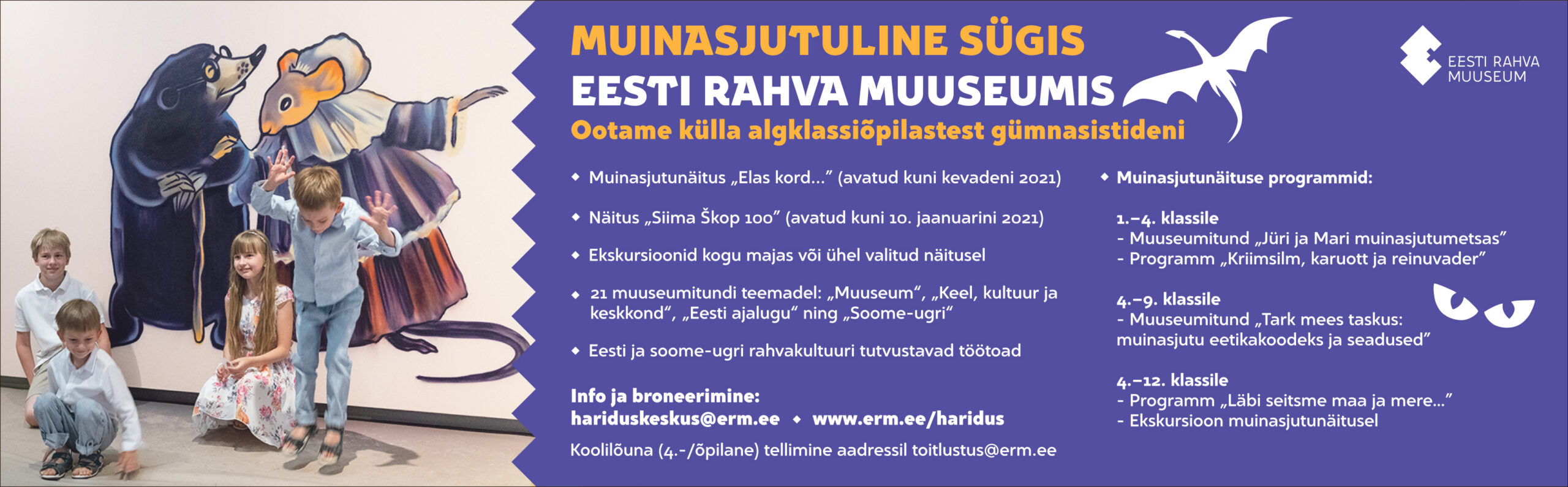Infot programmide ning e-õppe kohta leiab lehelt www.erm.ee/haridus. Lisainfo ja tellimine e-aadressil hariduskeskus@erm.ee.