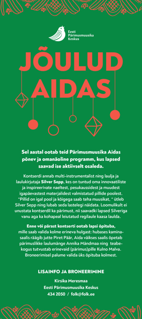 Rohkem infot aida jõuluprogrammi kohta leiab folk.ee kodulehelt.