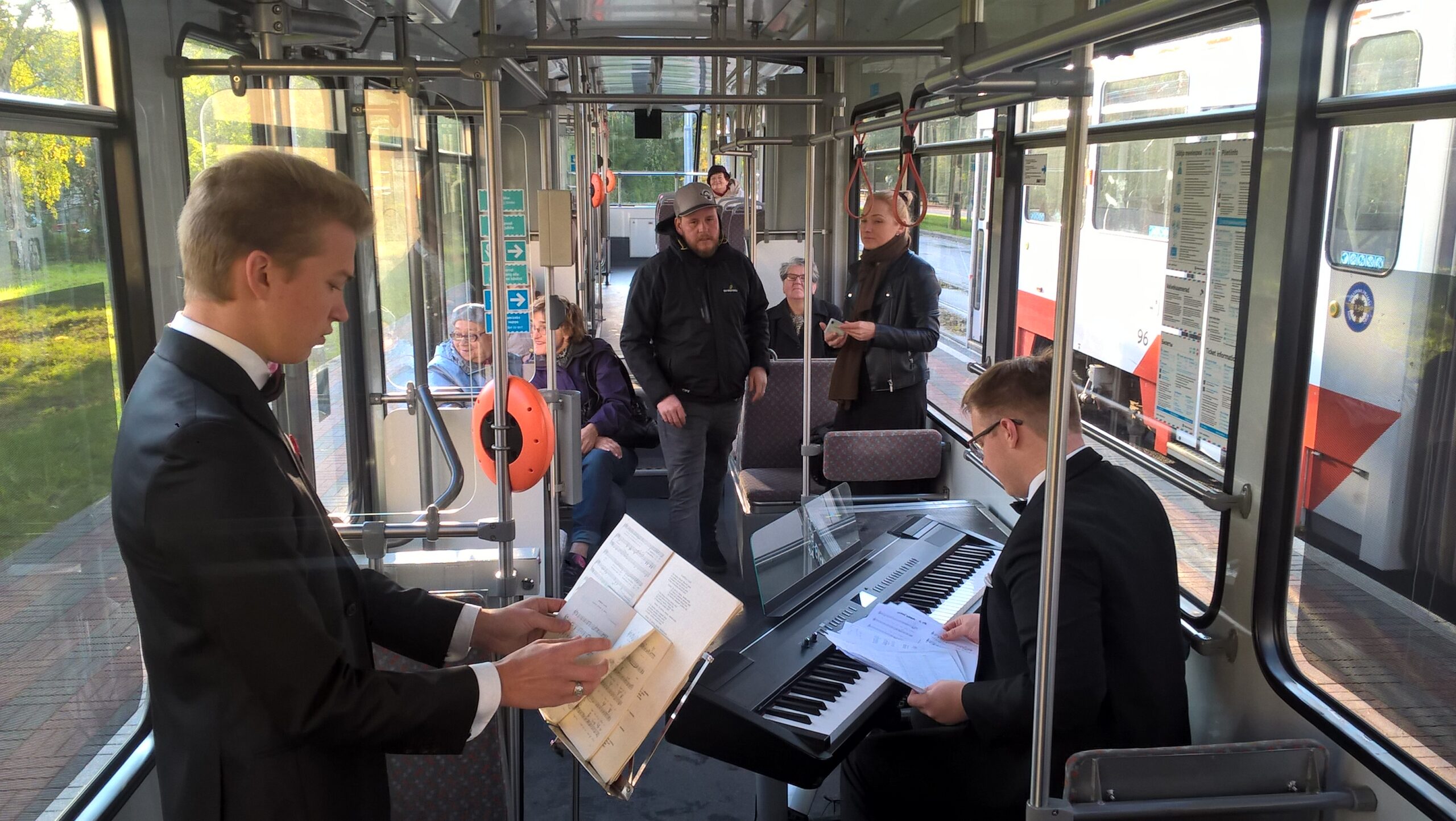 Paar hetke möödunud aasta muusikapäeva kontsertidelt. Ansambel Kolm Musketäri Georg Otsa trammis.