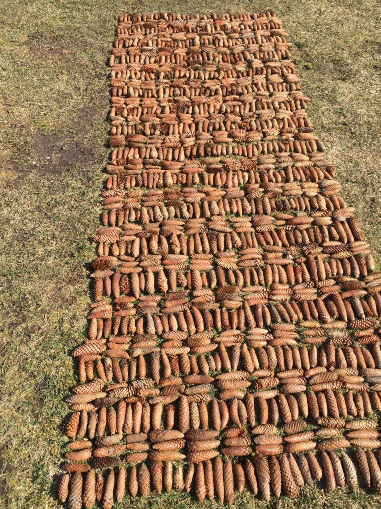 Kodusõppe neljandal nädalal tegid Rakke kooli õpilased käbidest vaipasid. Selle ülesande puhul ei saanud kuidagi teisiti, kui tuli sammud õue seada ja olla füüsiliselt aktiivne. Eelnevalt tegin kogu ettevõtmise omal nahal läbi, et oleks ettekujutus sellest, mida lastelt oodata. Nii said 3.–9. klassi õpilased ülesande minna loodusesse ja teha käbivaip. Iga õpilane pidi vaiba jaoks korjama vähemalt 300 kuuse- või männikäbi. Eeldasin ja ootasin, et lapsed koguvad palju rohkem käbisid. Nii juhtuski! Rõõmustas ka, et õpilased reageerisid jooksvatele üleskutsetele ning hakkasid käbivaipade „kudumisel“ rakendama loovaid ideid. Käbisid oli sellel kevadel tohutult ja agaramate õpilaste käbivaibad koosnesid isegi tuhandetest käbidest. Näiteks Alex Augervald (4. klass) kogus 2767 käbi, Fredi Karuks (4. klass) ja Ats Leinasaar (5. klass) mõlemad 2000, Henri Mitt (4. klass) 1368, Heli-Riin Kirsipuu (8. klass) 1200, Egert Kippel (5. klass) 1100, Karolina (6. klass) ja Markus Kull (3. klass) kumbki 853, Anni-Liis Viru (3. klass) 850 ning Delisa Dede (3. klass) ja Martin Lumiste (7. klass) mõlemad 740 käbi jne.