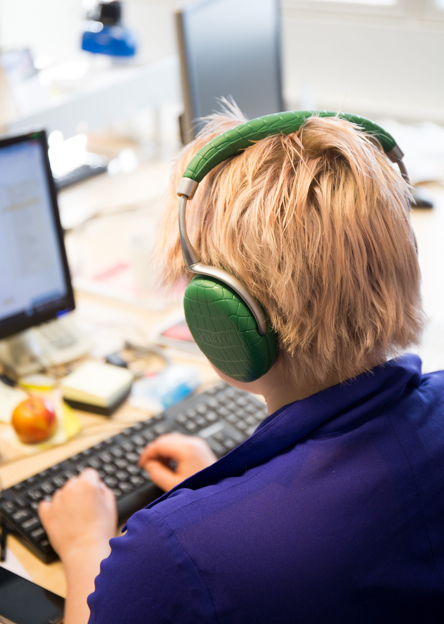TALLINN, EESTI : 11APR17 Parrot ZIK 3 kõrvaklapid. Kõrvaklappidega inimene töötab arvuti taga. Foto: LIIS TREIMANN/Postimees