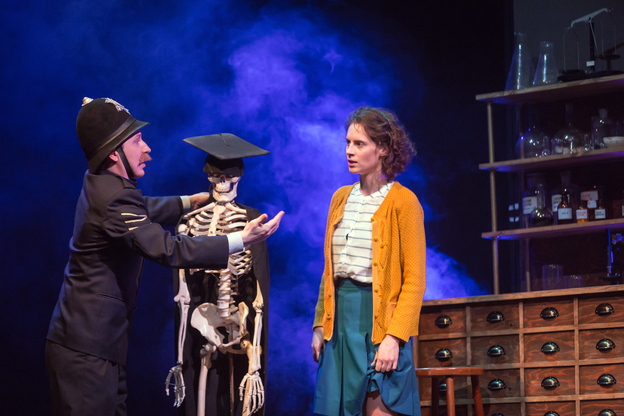 Ugala lavastuses „Piruka magus põhi“ lahendab mõrvu 11-aastane keemialemb Flavia de Luce (Ilo-Ann Saarepera). Foto: Aime Roosileht