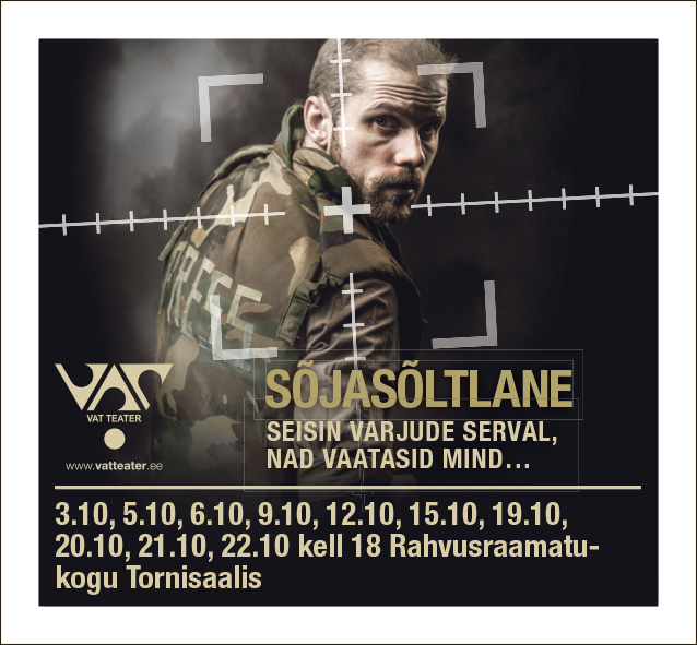 3. oktoobril esietendub rahvusraamatukogu Tornisaalis kevadest sügisesse lükkunud lavastus „Sõjasõltlane“. Lavastuse alus on rindeoperaator Jon Steele’i 2002. aastal ilmunud ülemaailmne bestseller, kus autor kirjeldab oma kutsumuse saatanlikku ja samas erutavat olemust. Töö rindeoperaatorina viis teda ühest kriisikoldest teise. Vaid loetud meetrid muutsid tsiviliseeritud linnatänava sõjatsooniks, kus iga järgnev sekund võis osutuda viimaseks. Operaatorina oli Steele’i ülesanne aga unustada igasugune alalhoiuinstinkt ning söösta otse kuulirahe keskele, sest kogu maailm pidi nägema, mida sõda inimestega teeb. Loo lavastab filmirežissöörina tuntud Sulev Keedus, mängivad Kristo Viiding (Eesti Draamateater) ja Karolin Jürise.