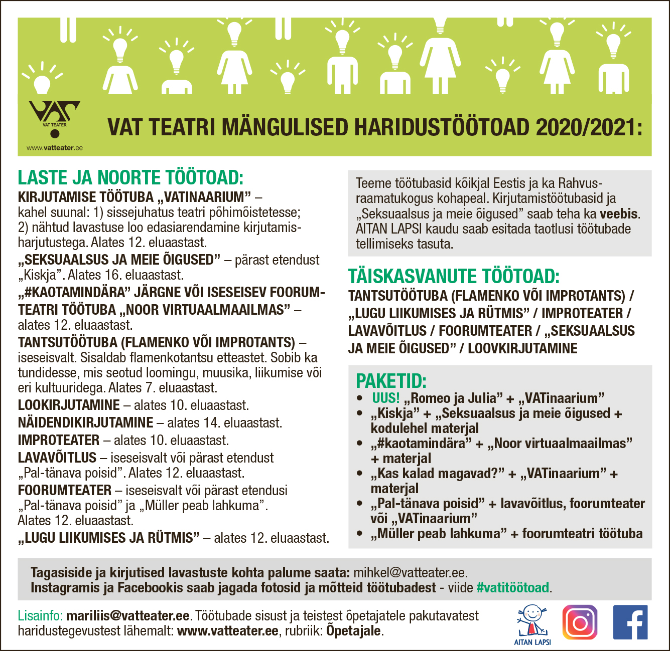 Kõigest uuest, aga ka juba eelmisel hooajal kavas olnud lavastustest ja töötubadest lähemalt meie kodulehelt www.vatteater.ee.