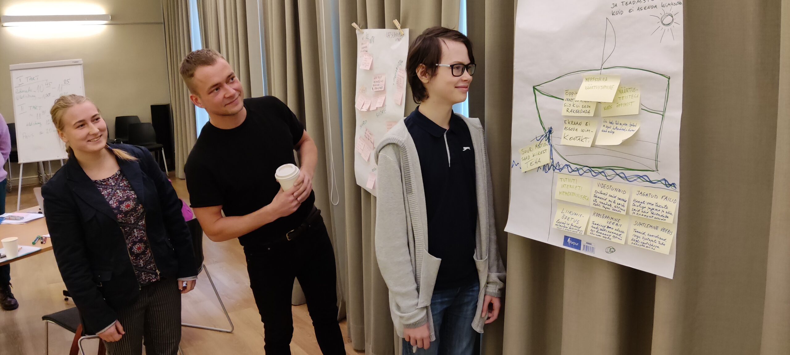 Jälgitavuse huvides on õpetajate ideed sinistel lipikutel ja lapsevanemate omad roosadel. Õpilased kasutasid kollaseid lipikuid.