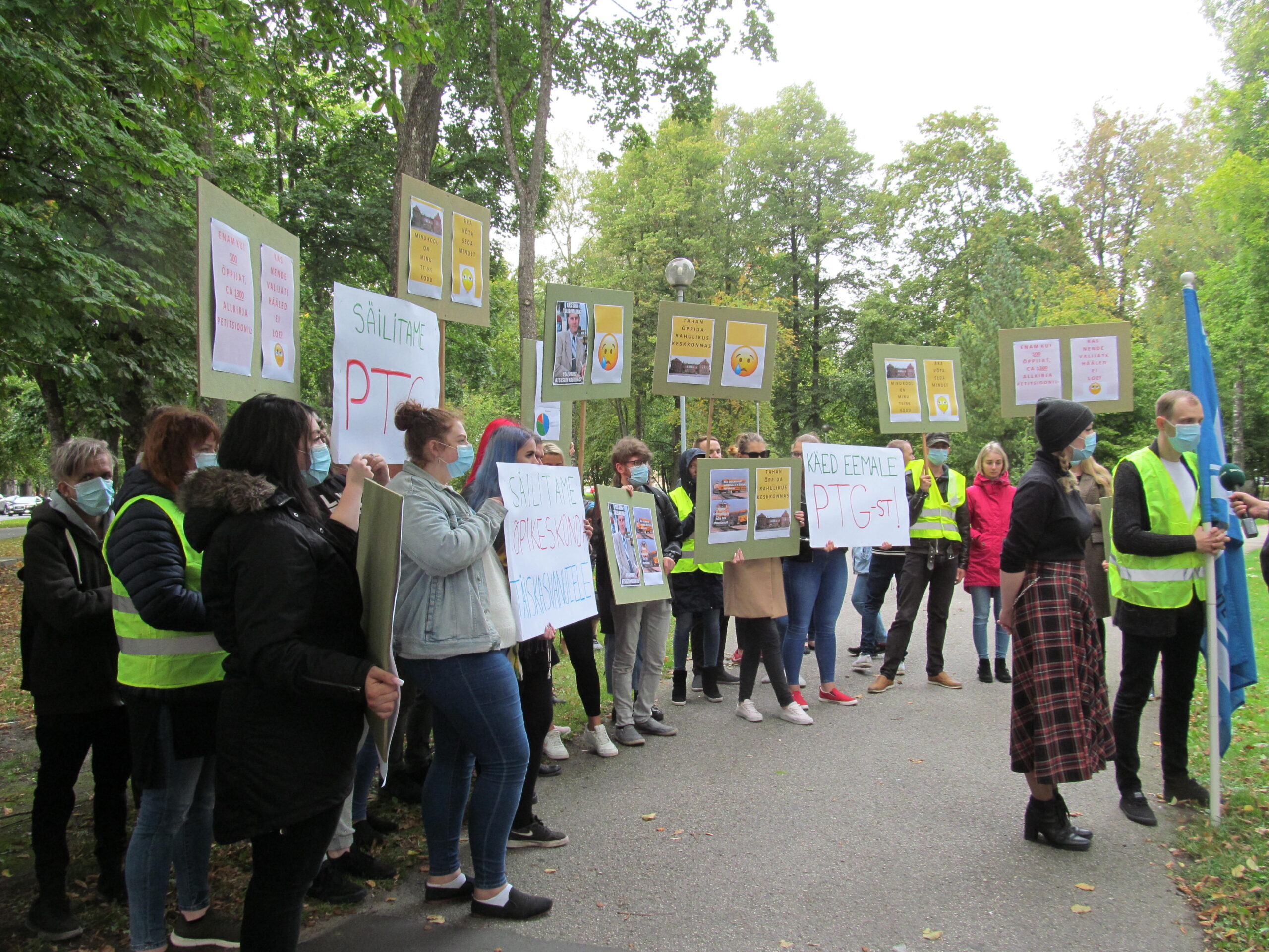 21. septembril oligi mitmekümnepealine seltskond plakatitega linnavalitsuse juures meelt avaldamas. „Meil on toimiv kool, 500 õpilast, lapsehoid. Me ei saa enam päeval tööl käia, kui tuleb hakata päevakoolis käima. Kutsekas on hoopis teine kool, meil on üldhariduskool,“ kõlasid arvamused.