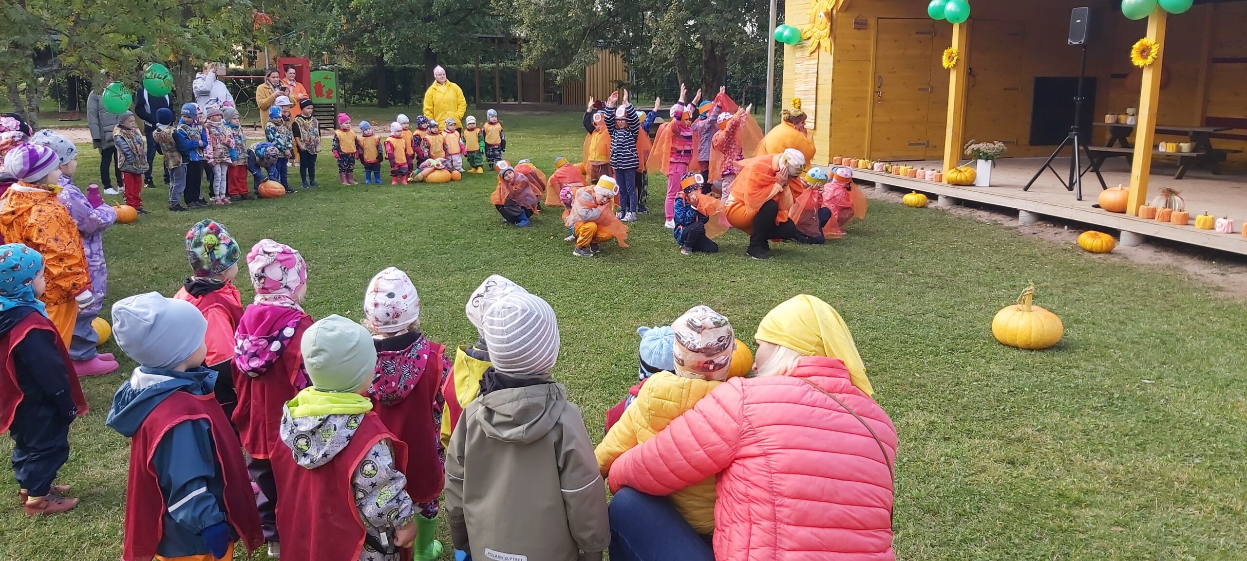 Oh seda laste imestust pärast suvepuhkust lasteaeda tulles! Kõrvitsad olid ajanud oma kasvud puude otsa ja oli näha, et neile seal väga meeldis. Lasteaia õuel kasvav kuusepuu oli nende kõige suurem sõber. Kõrvitsad õitsesid kuuse küljes ja hakkasid ka vilja kandma. Lapsed käisid kõrvitsaid kastmas ja vaatamas, kuni ühel päeval küsisid: „Kas see on kõrvitsapuu?“ Kuna lapsed tundsid kõrvitsate vastu suurt huvi, otsustasimegi septembri pühendada kõrvitsatele.