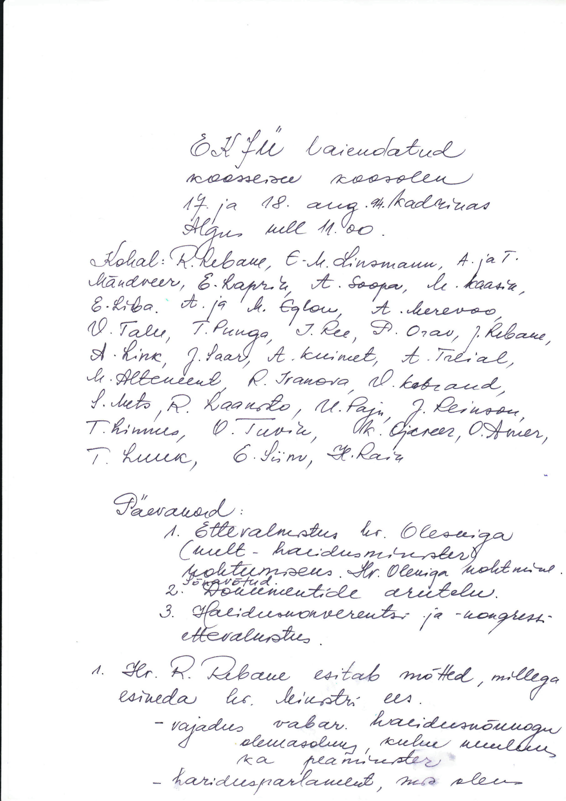 Milleks ja kellele on ühendust vaja, on kirjas ka põhikirjas. Jaan Reinson osutab protokollile, mille on oma käega kirjutanud Helve Raik.