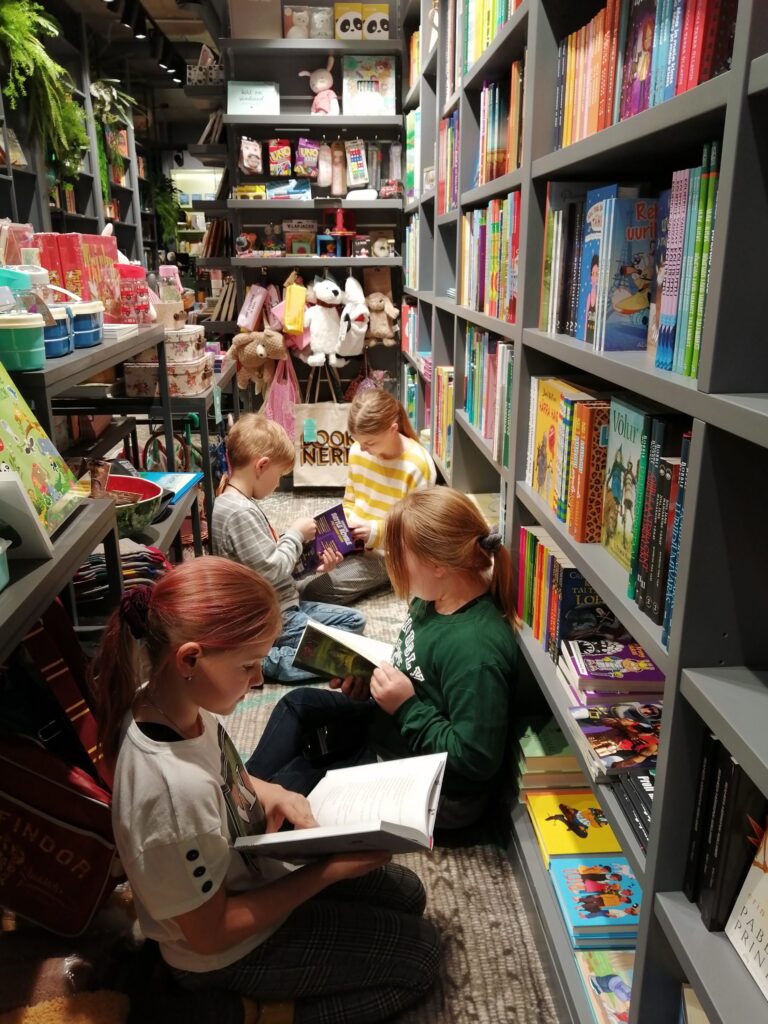 Lapsed tutvuvad raamatuvalikuga Rahva Raamatus. Foto: Malle Soosaar