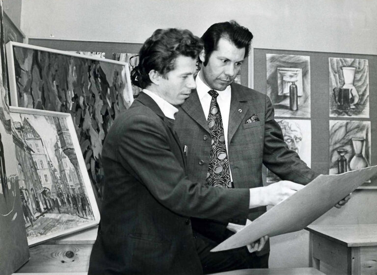 Kunstnikud Peeter Somelar (paremal) ja Aleksander Igonin olid Kohtla-Järve lastekunstikooli esimesed õpetajad.