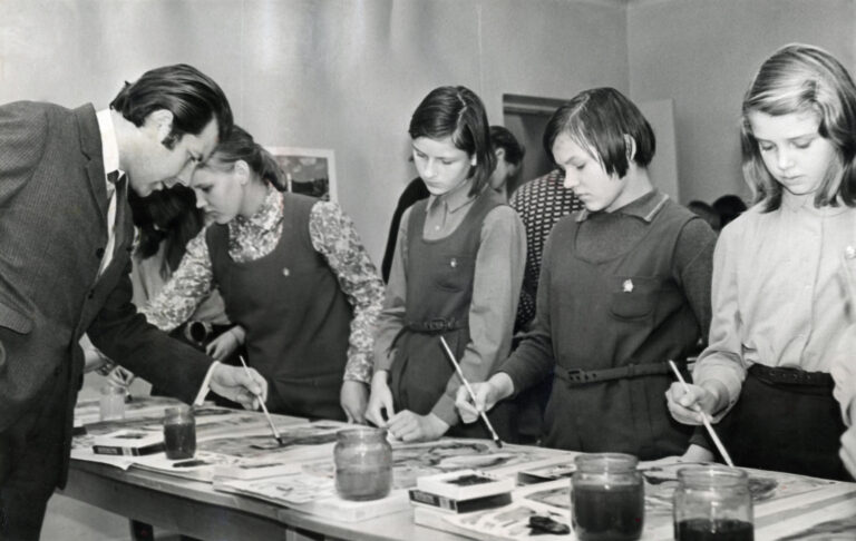 Õpetaja Peeter Somelari akvarellitund 1970-ndate algul. Fotod: Jõhvi kunstikool