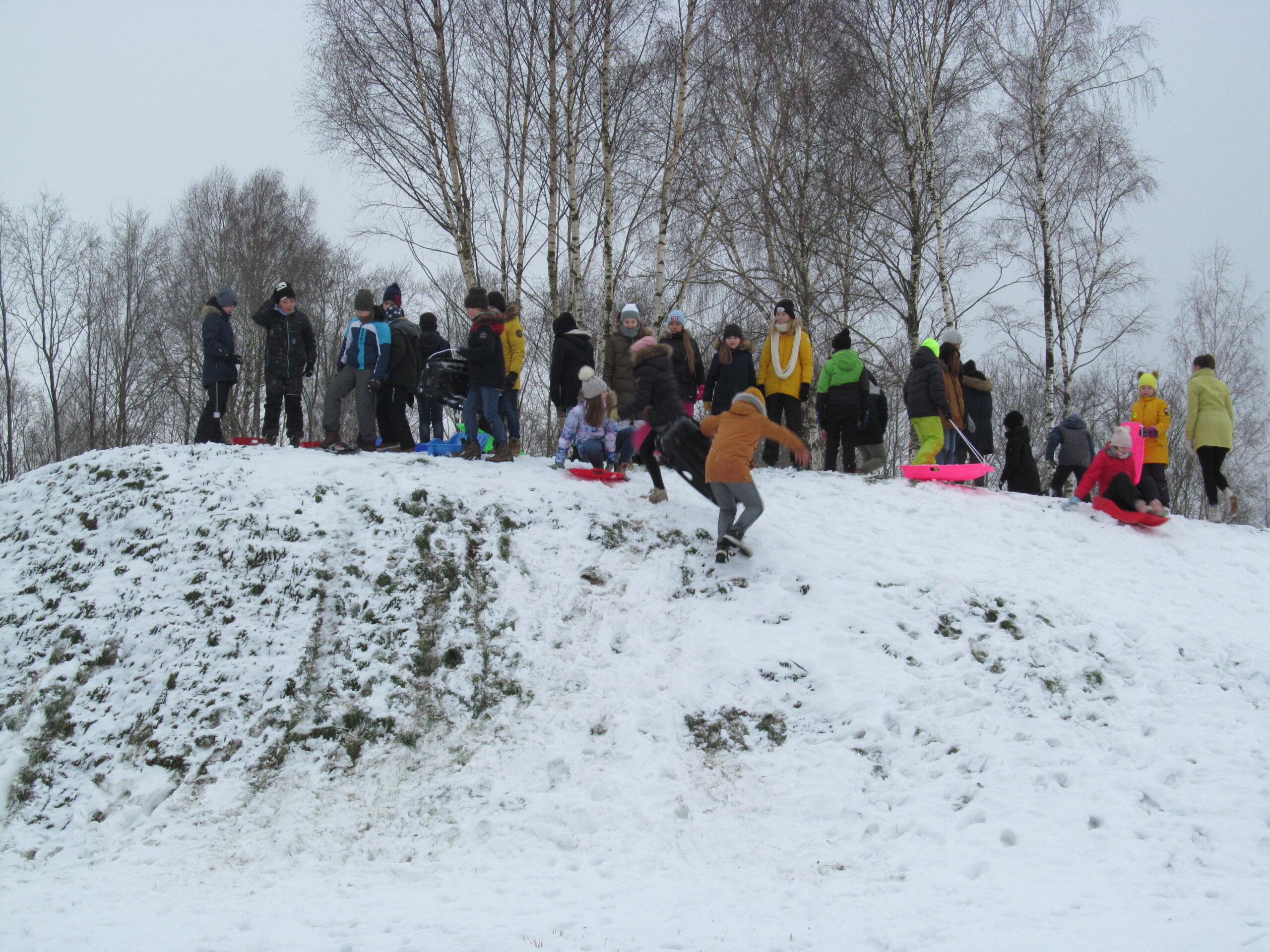 Koolil on oivaline võimla kardinatega eraldatava kolme võrkpalliplatsiga ja jõusaal. Uusim on kettagolfi väljak, mis valmis möödunud kevadel, ja kelgumägi, mille kasutusele võtmisele aitas kaasa kevadine koroonaaeg – just siis puhastati mägi võsast. Ja nüüd, esmaspäeva hommikul suundusidki neljandad klassid mäele veidi vesist talvemõnu nautima kodunt kaasa võetud ja kooli kelkudega.