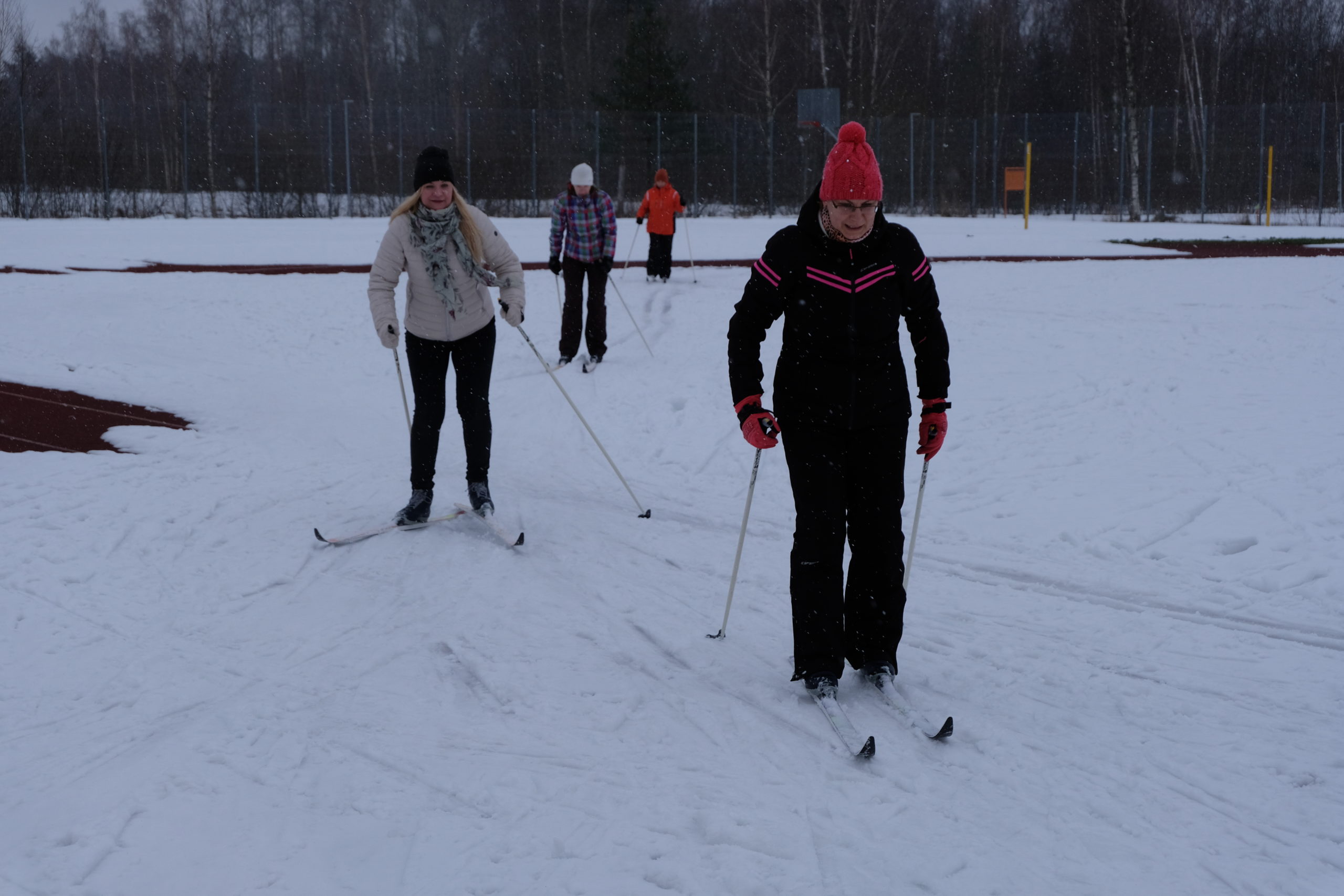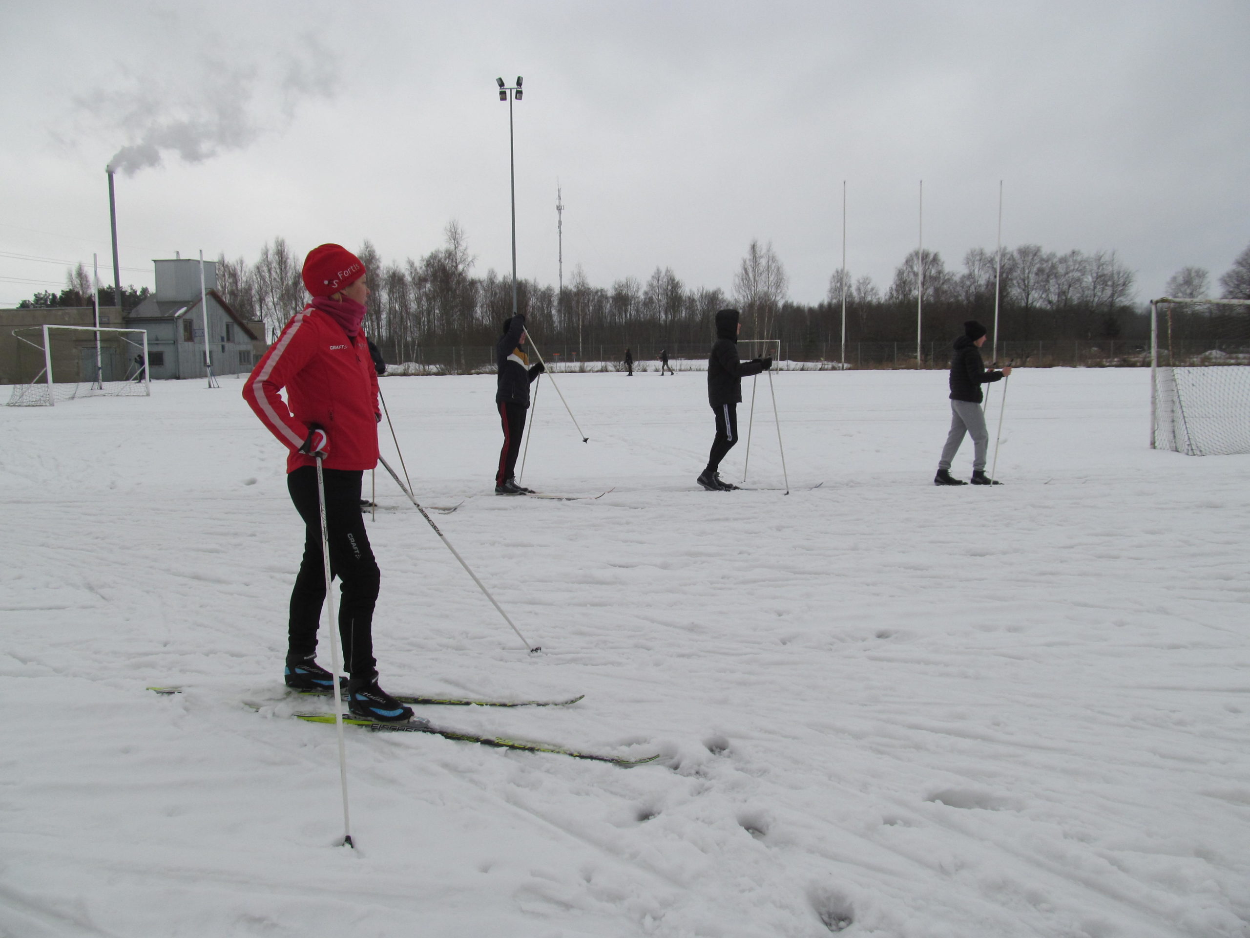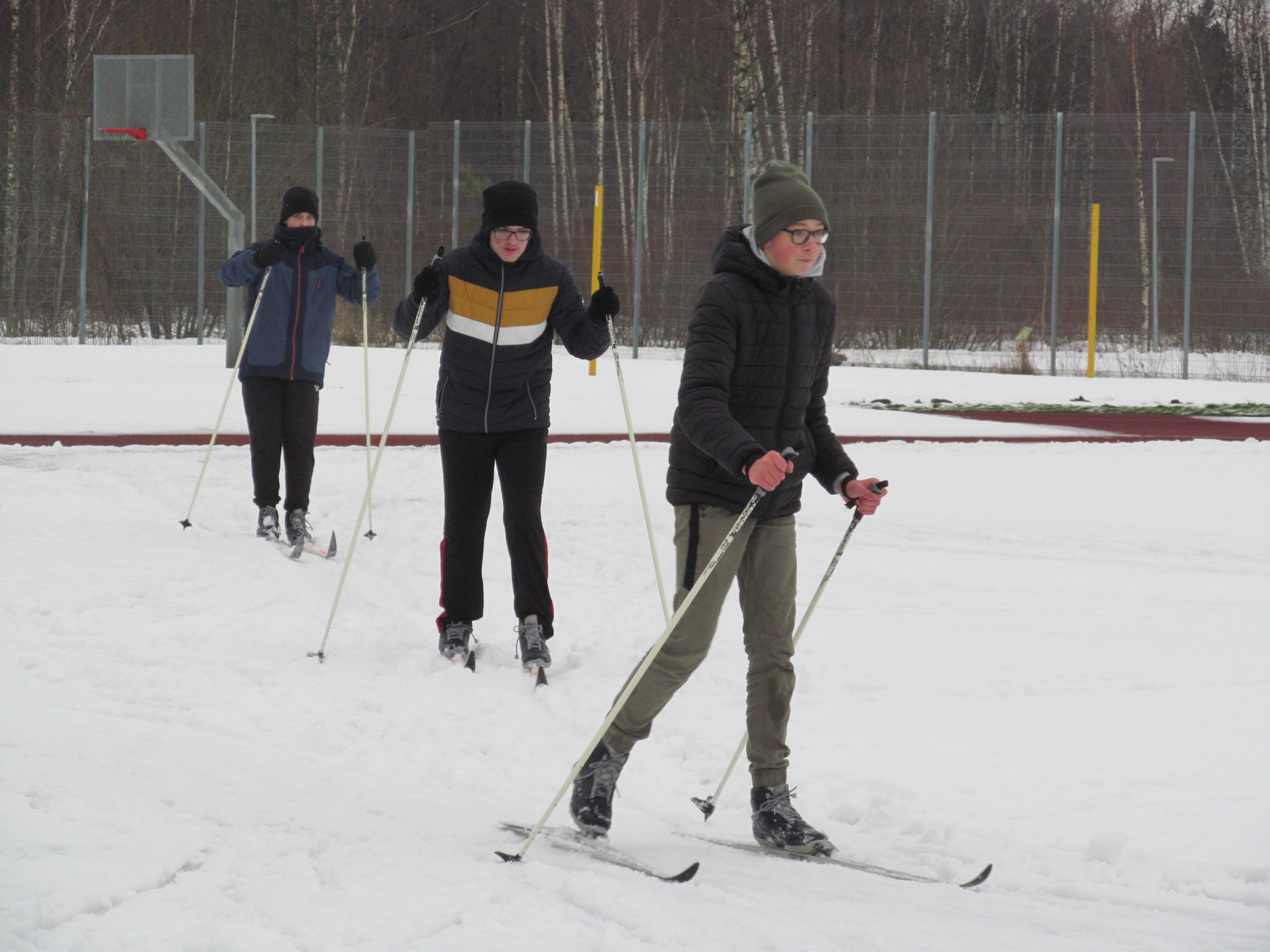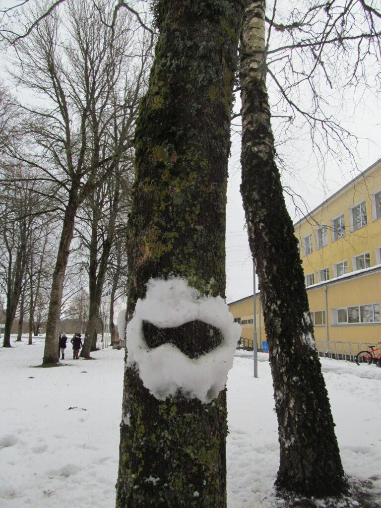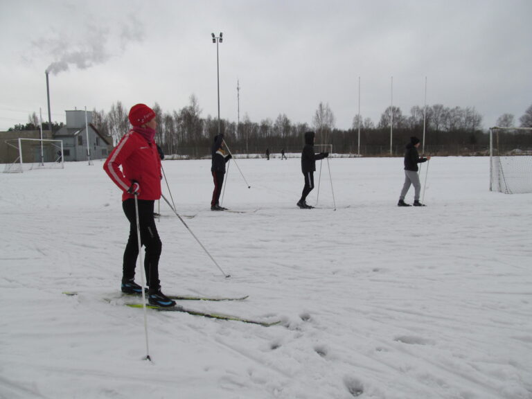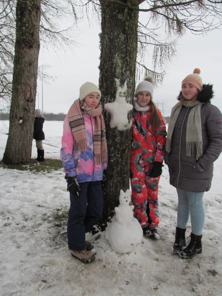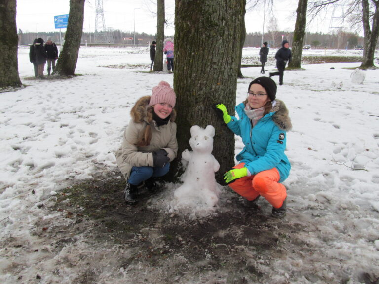Koolil on õpilaste jaoks eri mõõdus, väiksematele ja suurematele, suusavarustust, on ka uiske, kuid liuvälja pole kiusakas ilmataat lasknud viiel viimasel talvel rajada. See-eest oli suusatundide jaoks staadionil nädala algul lund veel piisavalt. Seda oli nõndagi palju, et vähemasti esmaspäeval said viiendad klassid õues kunstitunnis oma fantaasiat rakendada lumekujusid luues. Ülesanne polnud kuigi lihtne – mitte lumememmed, vaid lumest loom, lind või kala tuli luua puutüvedele.