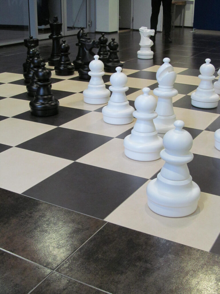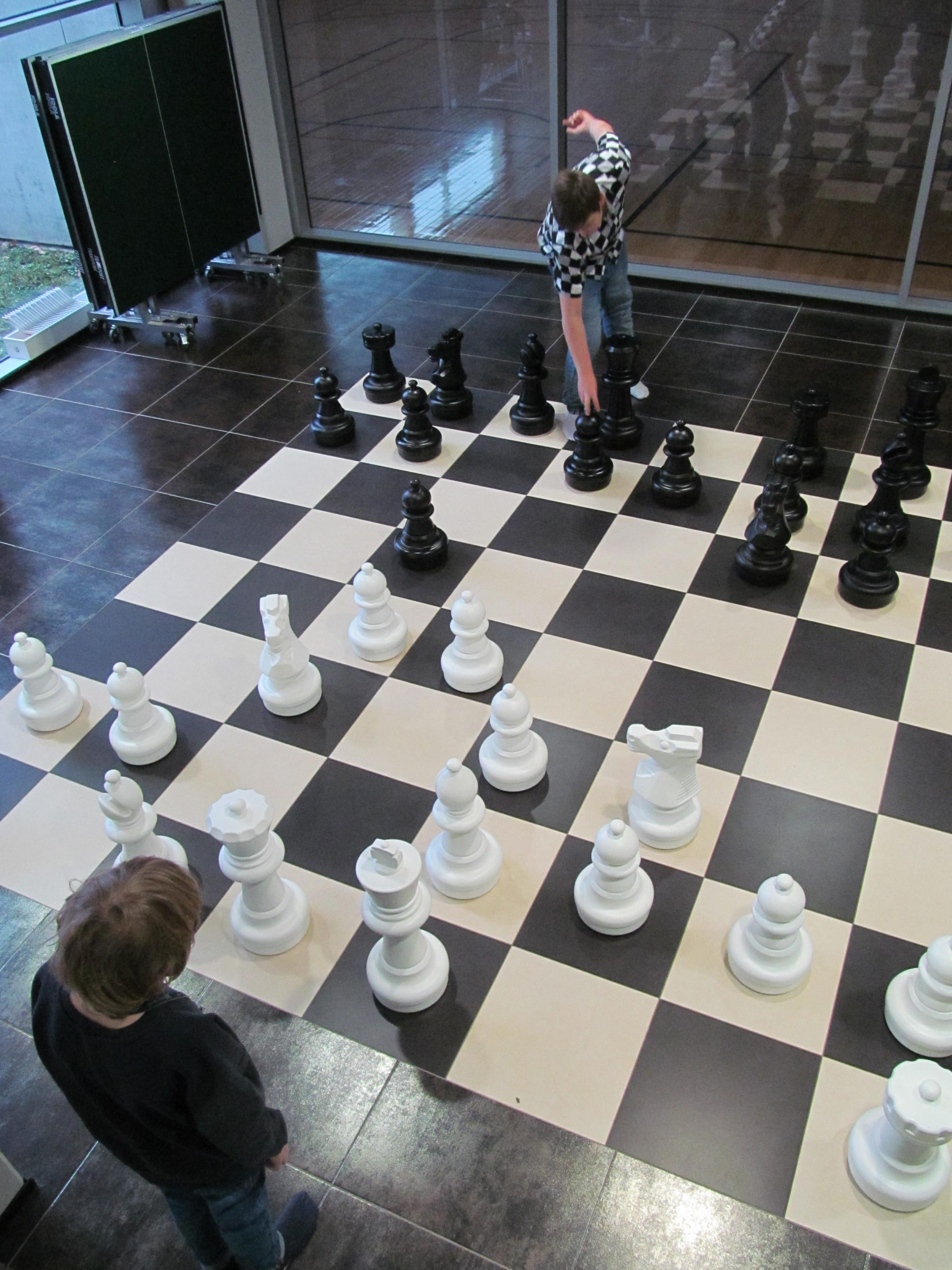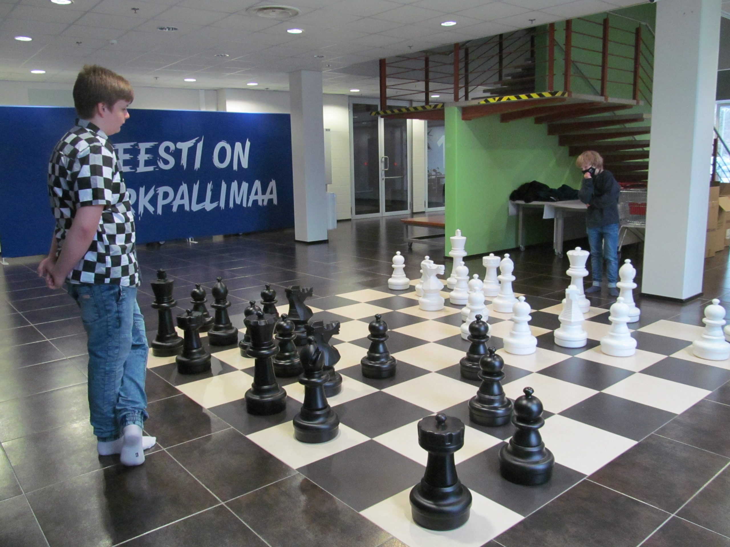 Pärnumaa malenoorte seas oma tulemustega tippu tõusnud Mai kooli õpilased, 13-aastane Rondo Mikko ja 10-aastane Hans-Georg Köösel seadsidki südapäeval malenuppe paika spordihallis malelaua mustris mustvalgele põrandaruudustikule.