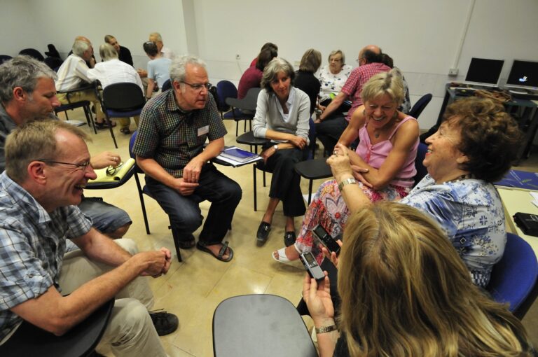 Õpetajad kuulamas holokaustis ellujäänu lugu.