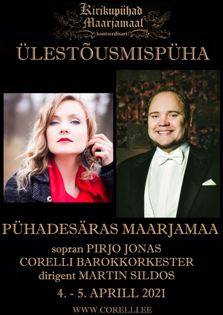 Corelli Music rõõmustab taas publikut kontserdisarjaga „Kirikupühad Maarjamaal“, mis sai alguse juba aastal 2006. Seekord tähistavad kontserdid ülestõusmispüha 4. ja 5. aprillil Tartu ja Tallinna kirikutes. Sopran Pirjo Jonas, Corelli barokkorkester ajastu pillidel ja dirigent Martin Sildos pakuvad kava, kus on barokiaja säravad hitid, kaunimad jõuluteemalised aariad ja orkestrimuusika – Händeli „Messias“, Bachi „Jõuluoratoorium“, Charpentier’ jõulusüidid jpm. Kuna jõulud ja ülestõusmispüha on kirikuaastas samasuguse rõõmusõnumiga, sobib jõulufestivalilt edasilükkunud kava suurepäraselt ka kevadpühadesse.