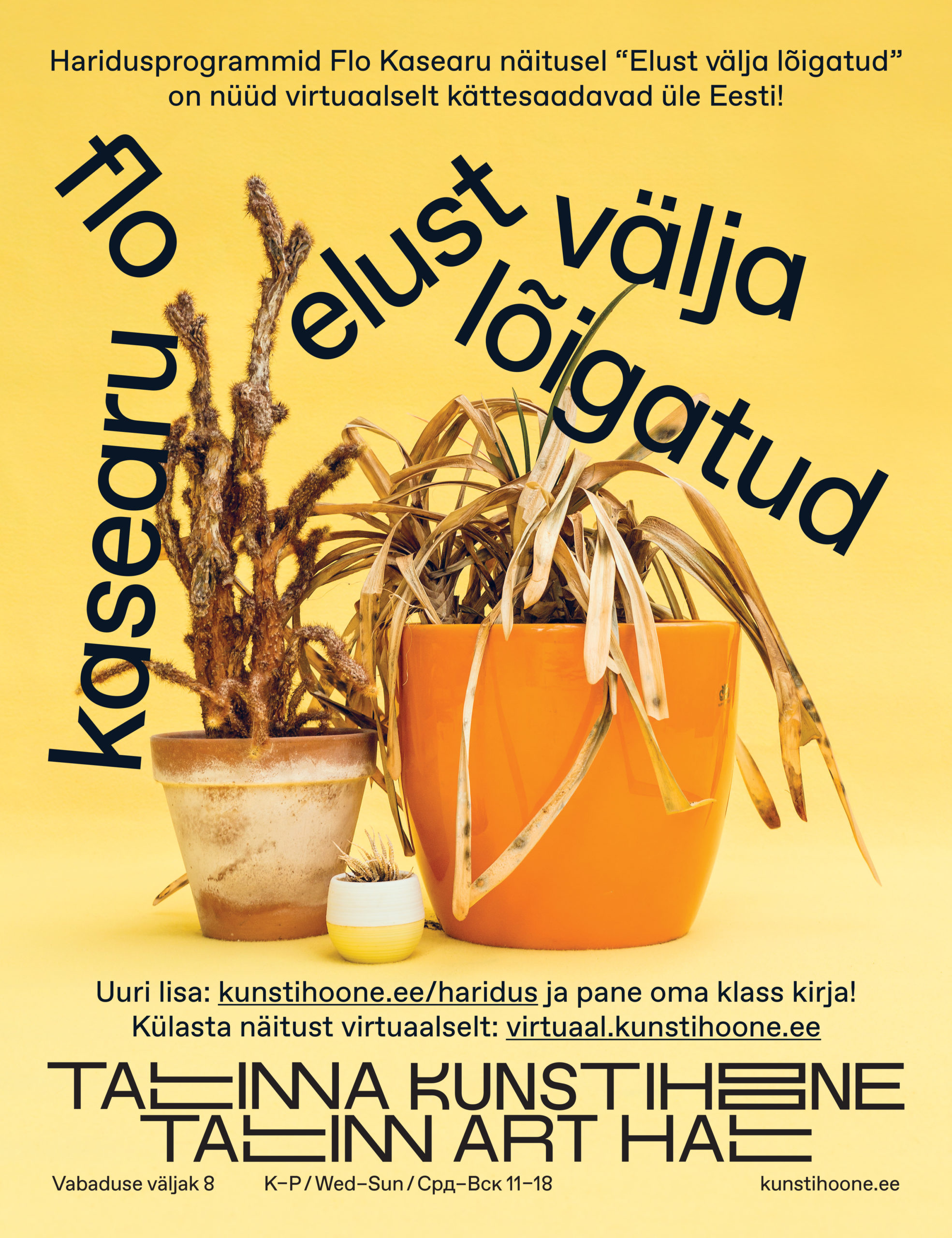 Kutsu kunst klassiruumi! Nüüd on võimalik näitust kogeda ka eemalt. Pakume kunstihoone haridusprogramme näituse virtuaalplatvormil Zoomi vahendusel. Vaja on vaid head internetiühendust ja valmisolekut sukelduda kaasaegse kunsti põnevasse maailma! Meie haridustöötajad juhendavad tundi ja näituse põhjaliku veebiversiooni vahendusel oleksite justkui kunstihoones kohal! Vaata lähemalt virtuaal.kunstihoone.ee.