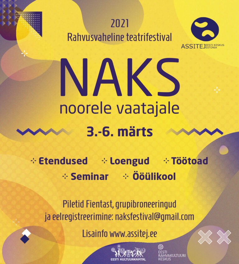 ASSITEJ Eesti keskusel on hea meel teatada, et sügisel viirusepuhangu tõttu edasi lükatud noore vaataja teatrifestival NAKS toimub 3.–6. märtsini Tallinnas. Ees ootavad neli päeva väärt etendusi, põnevaid töötube ning üks igati asjalik seminar väga olulisel teemal.
