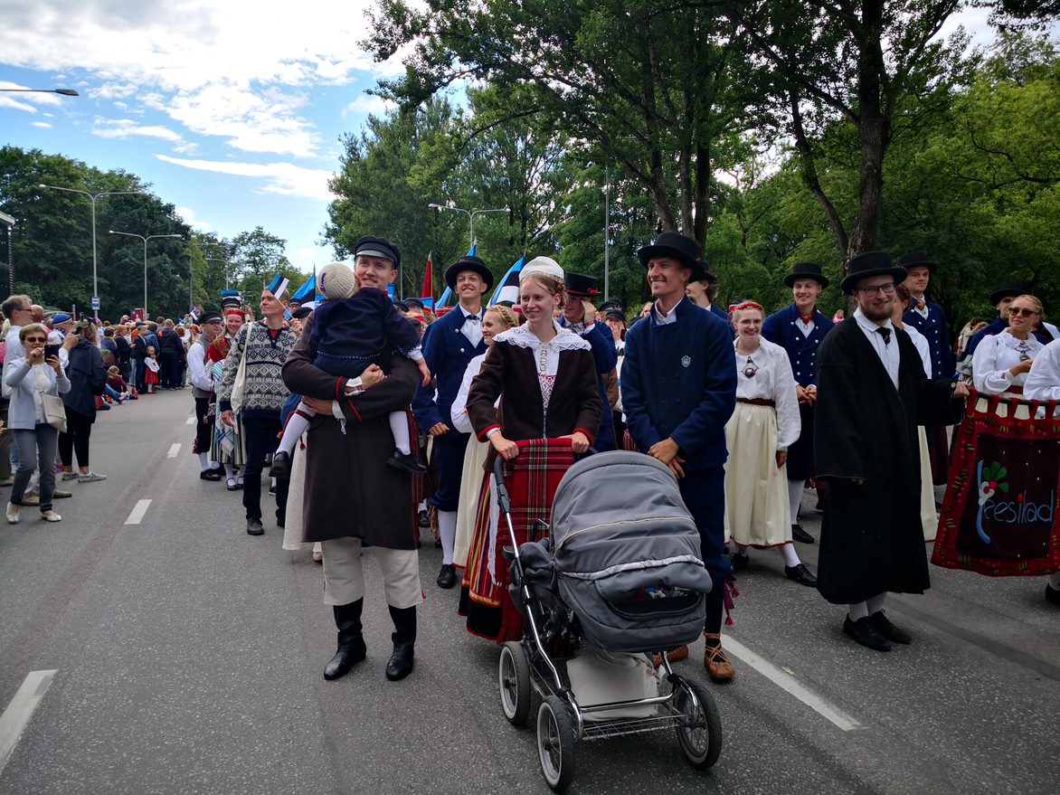 Kristiina Siig koos Leesikate ja oma perega 2019. aasta juubelilaulu- ja tantsupeo rongkäigus.