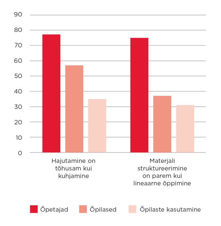 Mitmed uuringud Eesti õpetajatega on viidanud, et meie õpetajate teadmised õpistrateegiate tõhususest on pigem head. Paljud vastanutest oskavad oma vastuseid ka põhjendada, viidates nüüdisaegsetele õppimise ja mälupsühholoogia teadmistele. Õpetajate suhteliselt häid teadmisi kinnitas ka TLÜ haridusinnovatsiooni keskuse viimane „Õpetajauuring 2021“. Selgus, et õpetajad hindavad mõnevõrra kõrgemalt keerukamaid, eelteadmisi ja pingutamist nõudvaid strateegiaid, ning madalamalt mehaanilise kordamise strateegiaid.