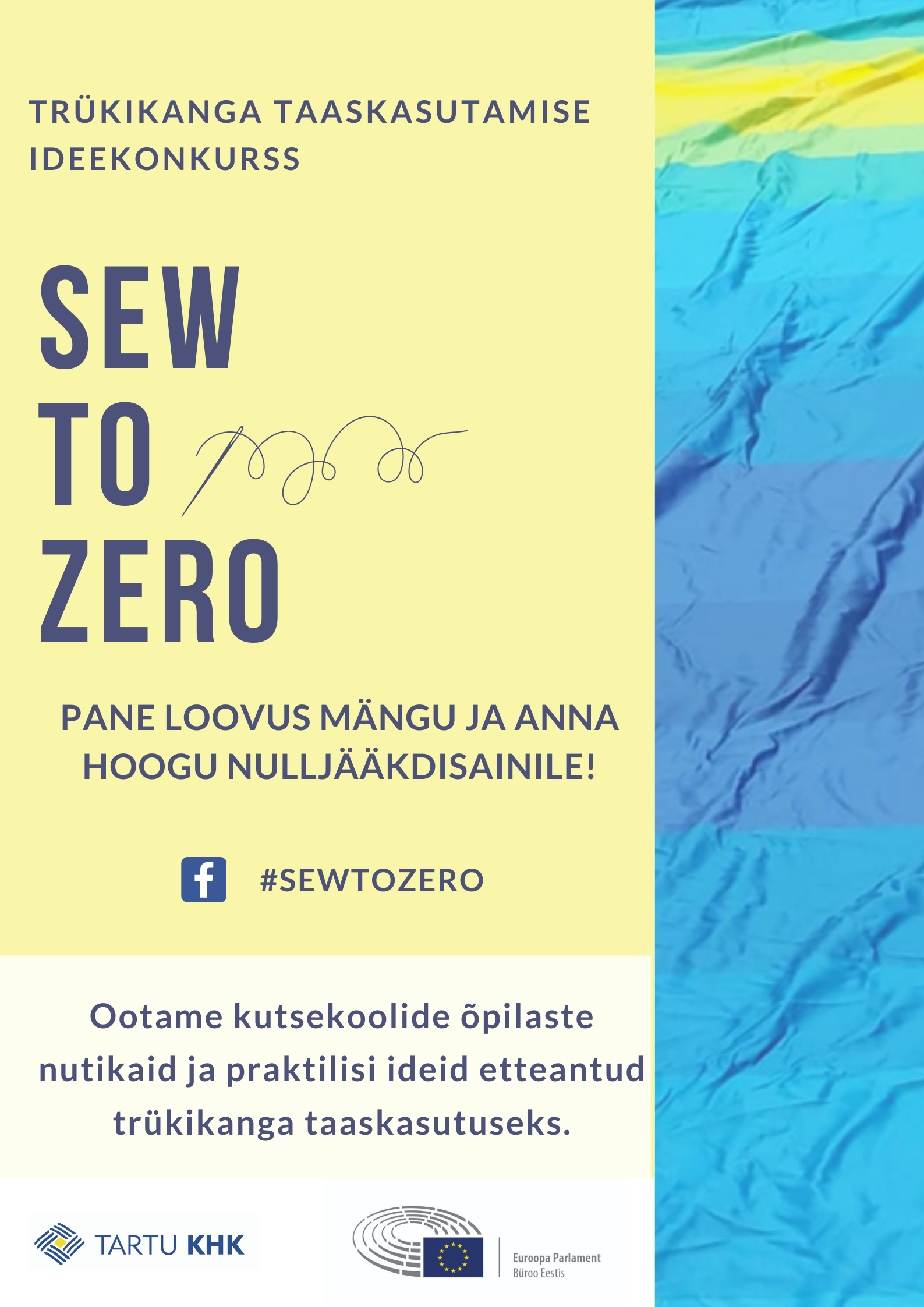 Tartu kutsehariduskeskus kuulutas välja rahvusvahelise ideekonkursi „Sew to Zero“, mille käigus otsitakse nutikaid ja innovaatilisi lahendusi trükikanga taaskasutuseks. Projekti laiem eesmärk on tutvustada nulldisaini põhimõtteid ning kujundada õpilastes jätkusuutlikku ja keskkonnasõbralikku mõtteviisi.