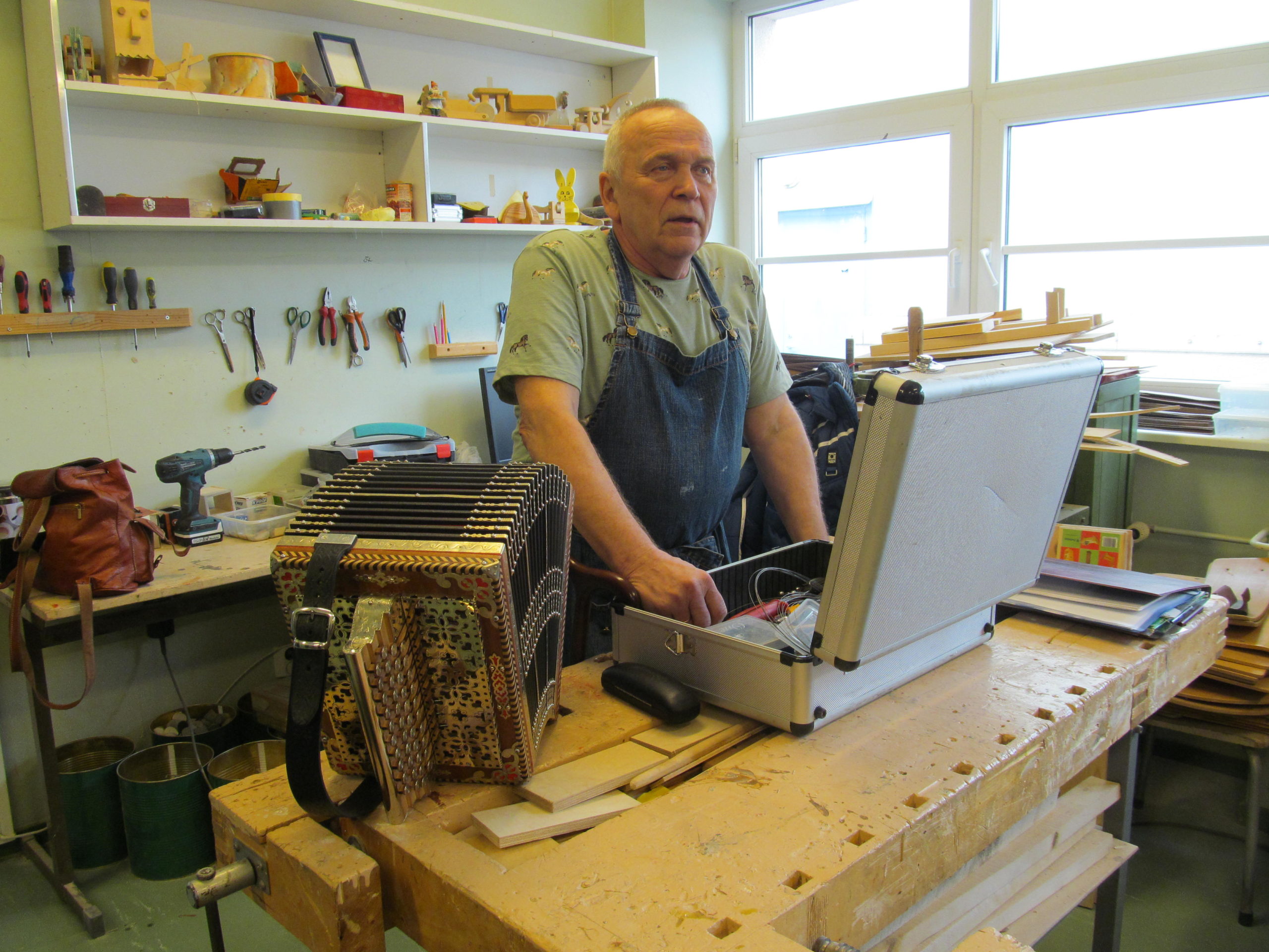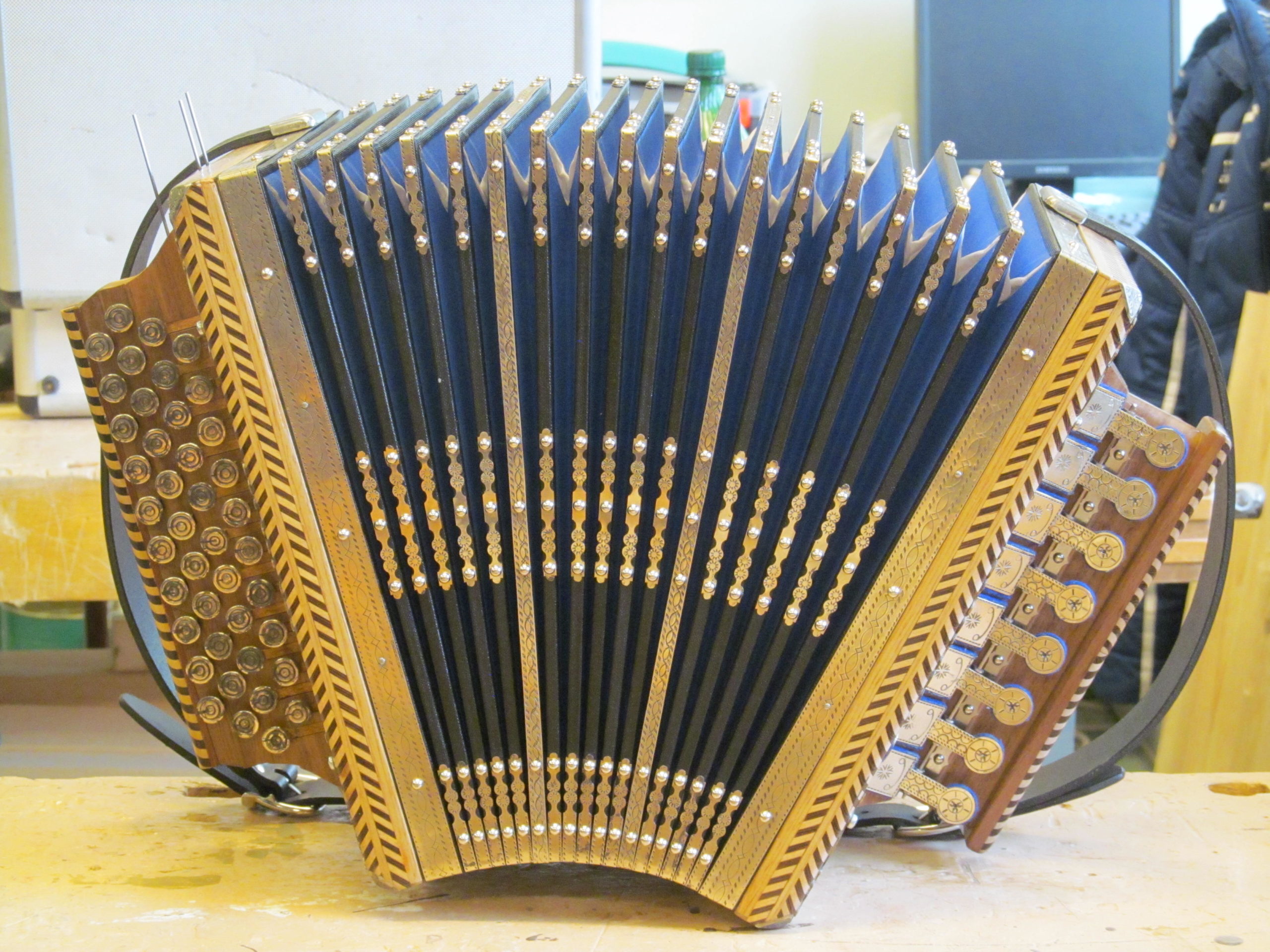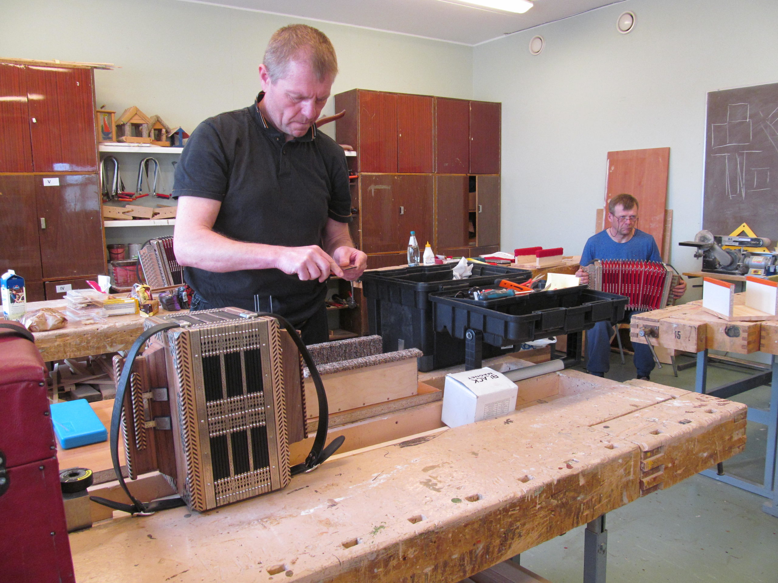 Huvilised tulid esimest korda kokku kahe aasta eest novembris, et asja arutada, ja töö läks lahti jaanuaris. Koolimajas on koos käidud üle nädala laupäeviti, vaid koroona tõttu peeti pausi ja suvel käidi harvemini koos. Kaks laupäeva kuus on olnud tõhusad tööpäevad, ikka kella kümnest viieni, sest lõõtspilli meisterdamine on väga aeganõudev käsitöö. Ühes pillis on peidus neli ja pool tuhat detaili väga mitmest materjalist, nagu vineer, pöök, tamm, metall, kalingur, nahk, alpaka jm. Detaile ja osakesi on tulnud välja lõigata, liimida, joota, puurida, lihvida, lakkida, poleerida jne ning iga tegevust kõigepealt õppida. Töö on nõudnud aega. „Ega seda kiiruse peale teha saa,“ nentis Umal.