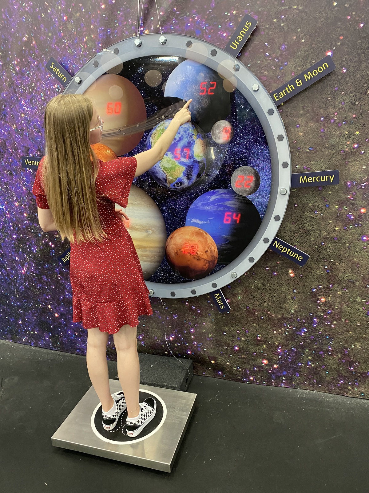 Gravitatsiooni kohta saab targemaks AHHAA-s leiutatud ja valmistatud eksponaatide abil. Mis tunne on Kuu peal ringi hüpelda? Kui palju kaalub liiter piima Marsil või hoopiski Veenusel? Mis vahe on gravitatsiooni- ja tsentrifugaaljõul? Mis tunne on olla hetkeks sootuks kaaluta olekus?