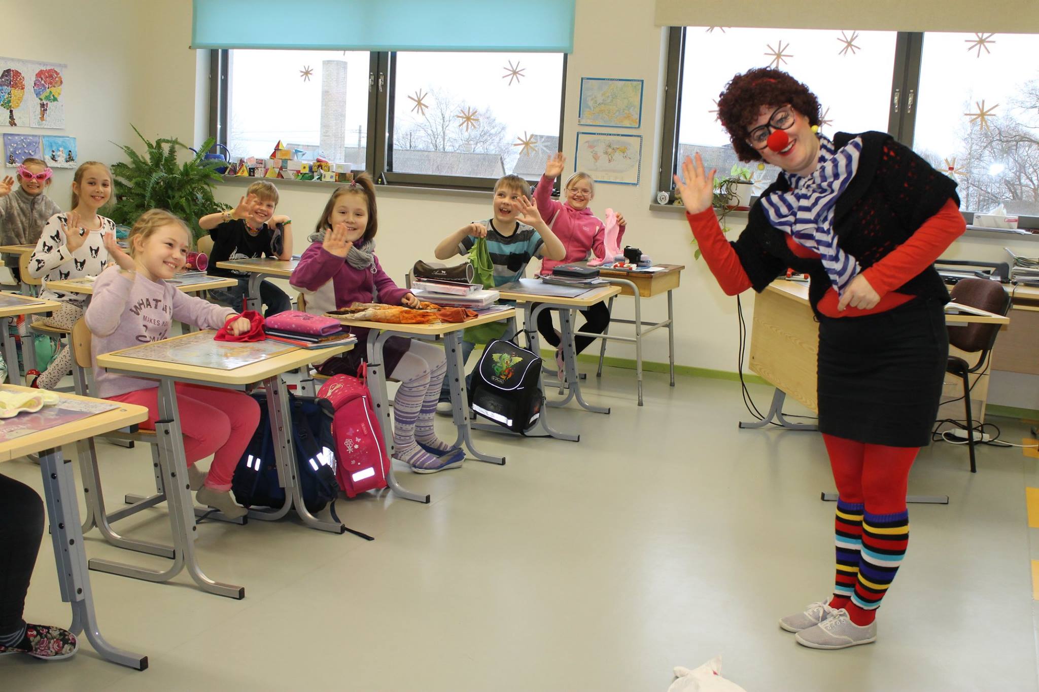 Ühtehoidvas kollektiivis nauditakse nalja ja juletakse koolipäeval lustida. Lindi lasteaias-algkoolis mõeldakse alatasa välja midagi põnevat, mis tunni eriliseks teeb. Naljapäeval ei pelga õpetajad olla ise nagu naljanumbrid. Foto: Lindi LA