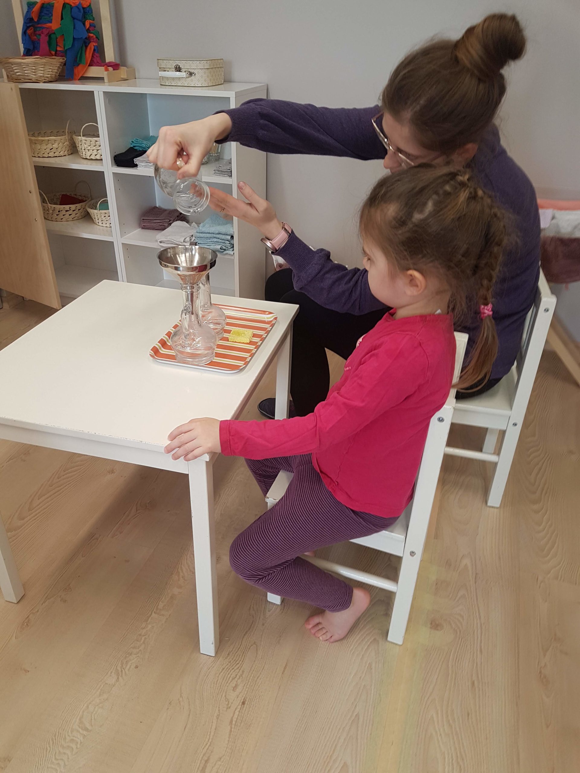 Mul on kaks suurepärast assistenti, kelle kanda on rühmas piiride seadmine, töö- ja keskendumisrahu tagamine, laste iseseisvuse toetamine, neile rikkaliku keelekeskkonna pakkumine. Ühel neist on Montessori assistendi diplom. Olen ise ka neile koolitusi teinud, rääkinud sellest, kuidas lastega suhelda, mida tähendab lapse austusega kohtlemine jne. Olen ise alles algaja juhendaja ja nemad on algajad assistendid, koos õpime.