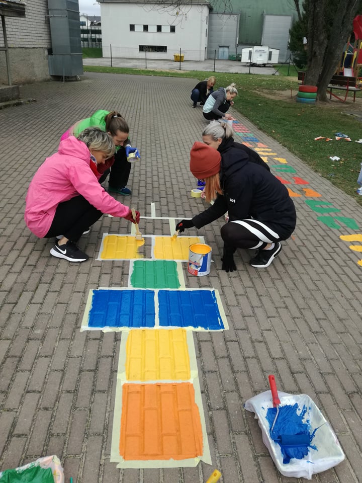 Terve pika õppeaasta, 2020. aasta augustist kuni selle suveni on meie seitsme rühma vanemad ja töötajad südamega panustanud hoovilusti täiustamisse: keksukastid, liikumisrajad nii asfaldil kui värviliseks võõbatud puidust pakkudel, autoköök, pallitunnel, poriköök, värvikirev tsikkel, tulijaid tervitav asfalditriinu väravas, kes annab vaikides kätte suuna õige rühma leidmiseks, ehitustäiendusi saanud lehtla, kuhu pugeda vihmavarju, kui on soov sajuse ilmaga õues õppida, pillimaja jne.
