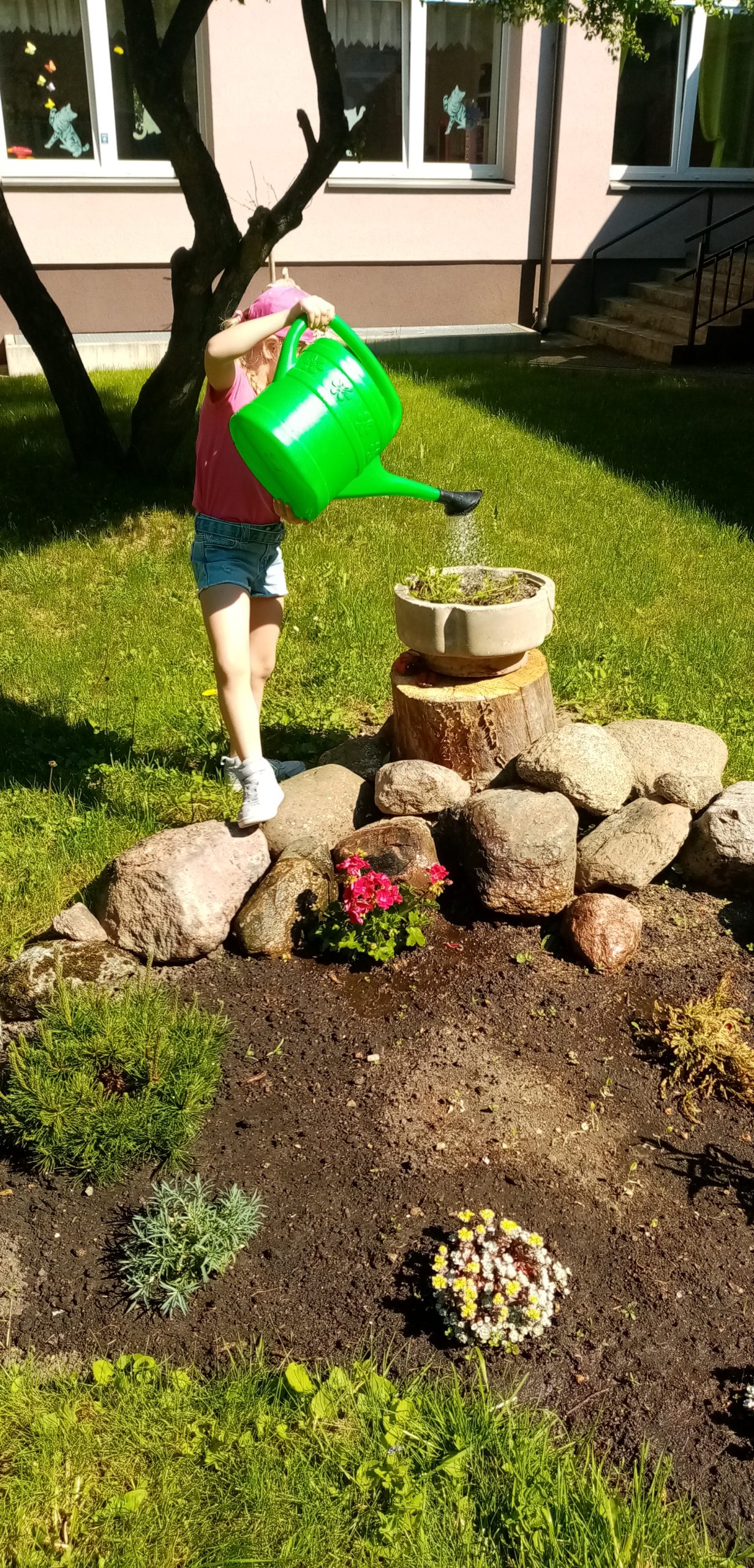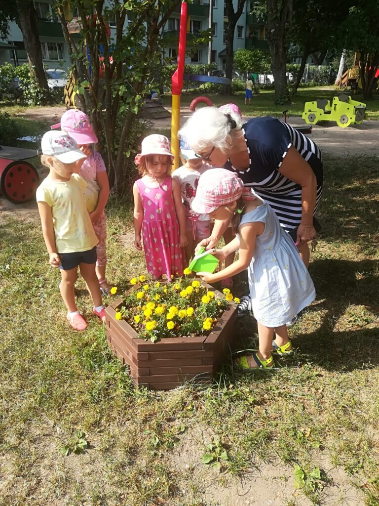 Aprilli lõpus külvasid lapsed aiaäärse maalapi peale ka lillemuru seemneid: moone, rukkililli ja muudki. Soov oli pakkuda nii lastele kui ka täiskasvanutele õieilu ja avastamisrõõmu ning sisustada laste suvised päevad lillede eest hoolitsemisega. Juuli keskpaigaks olid lilled tärganud ning vaatepilt kirju. Leidus kollaseid, siniseid, punaseid ja roosasid, suuremaid ja väiksemaid õisi. Alati jagus lastel lasteaiapäeva jooksul aega, et viia lilledele piisavalt juua. Eriti usinad olid kastma sõimelapsed.