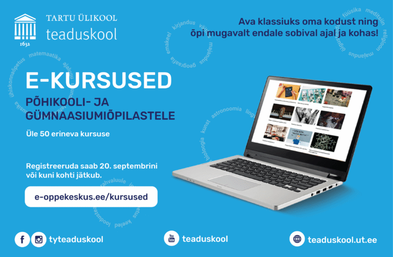 Põhikooli- ja gümnaasiumiõpilased on väga oodatud Tartu Ülikooli teaduskooli e-kursustele, mis pakuvad süvateadmisi, aitavad olümpiaadideks valmistuda, avardavad silmaringi ja tutvustavad TÜ erialasid.
