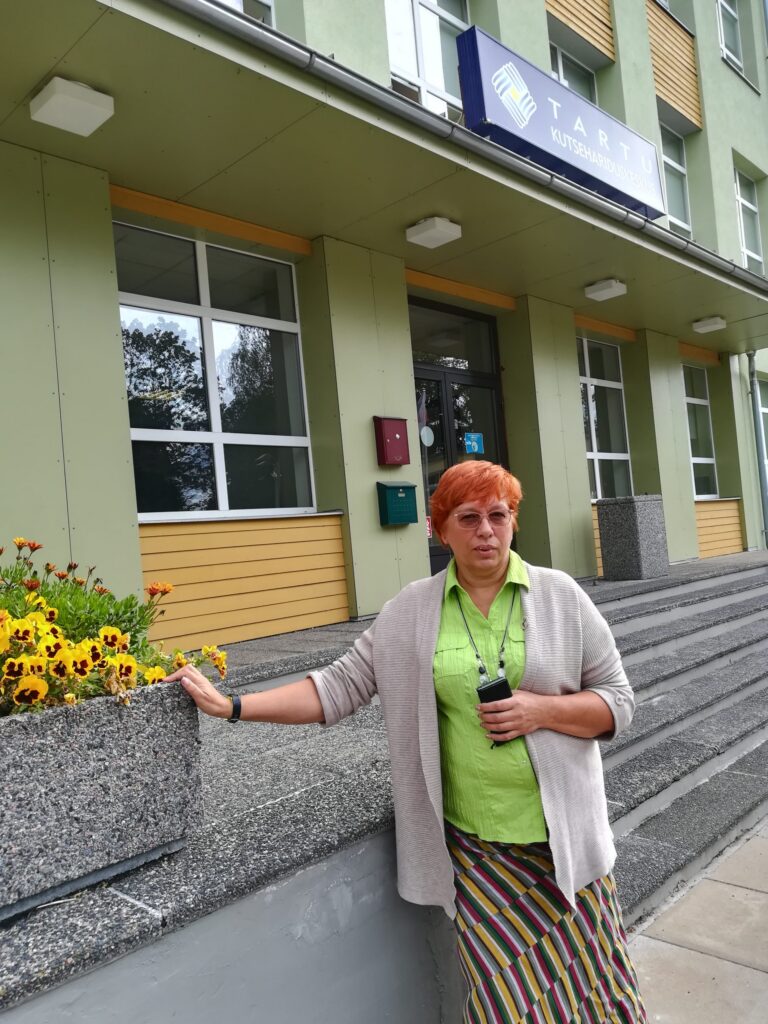 Vilve Pohla Tartu KHK Põllu tänava õppekorpuse ees. Foto: Sirje Pärismaa