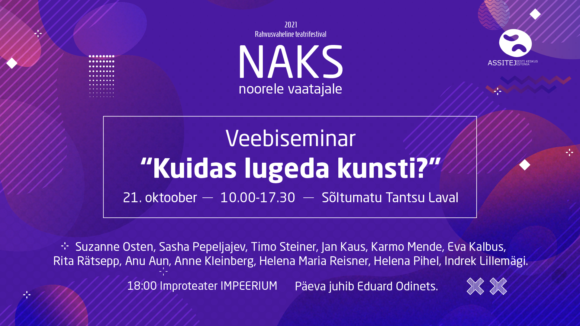 - Seminar kantakse üle www.naksfestival.ee lehel ja vaatajatel on võimalus ka küsimusi esitada.