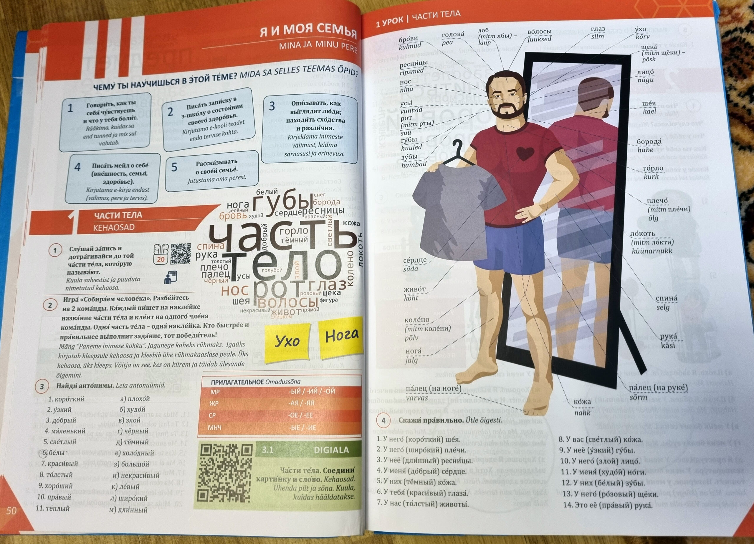 Selle õppematerjali toel saavad gümnasistid vaadata huvitavaid videoid, lahendada ristsõnu, täita ankeete, ära arvata mõistatusi, lugeda numbritest koosnevaid luuletusi ja isegi joonistada, nt tuleb visandada kirjelduse järgi inimene. Õpikus on kõik sõnad tähistatud rõhumärgiga, sest just rõhk on sageli vene keele õppijale komistuskivi. Siin on ka digiülesanded, millele pääseb ligi QR-koodiga, ja ei puudu loomingulised ülesanded tööks väikestes gruppides: paaristööd, rollimängud, presentatsioonid, audiofailide koostamine.