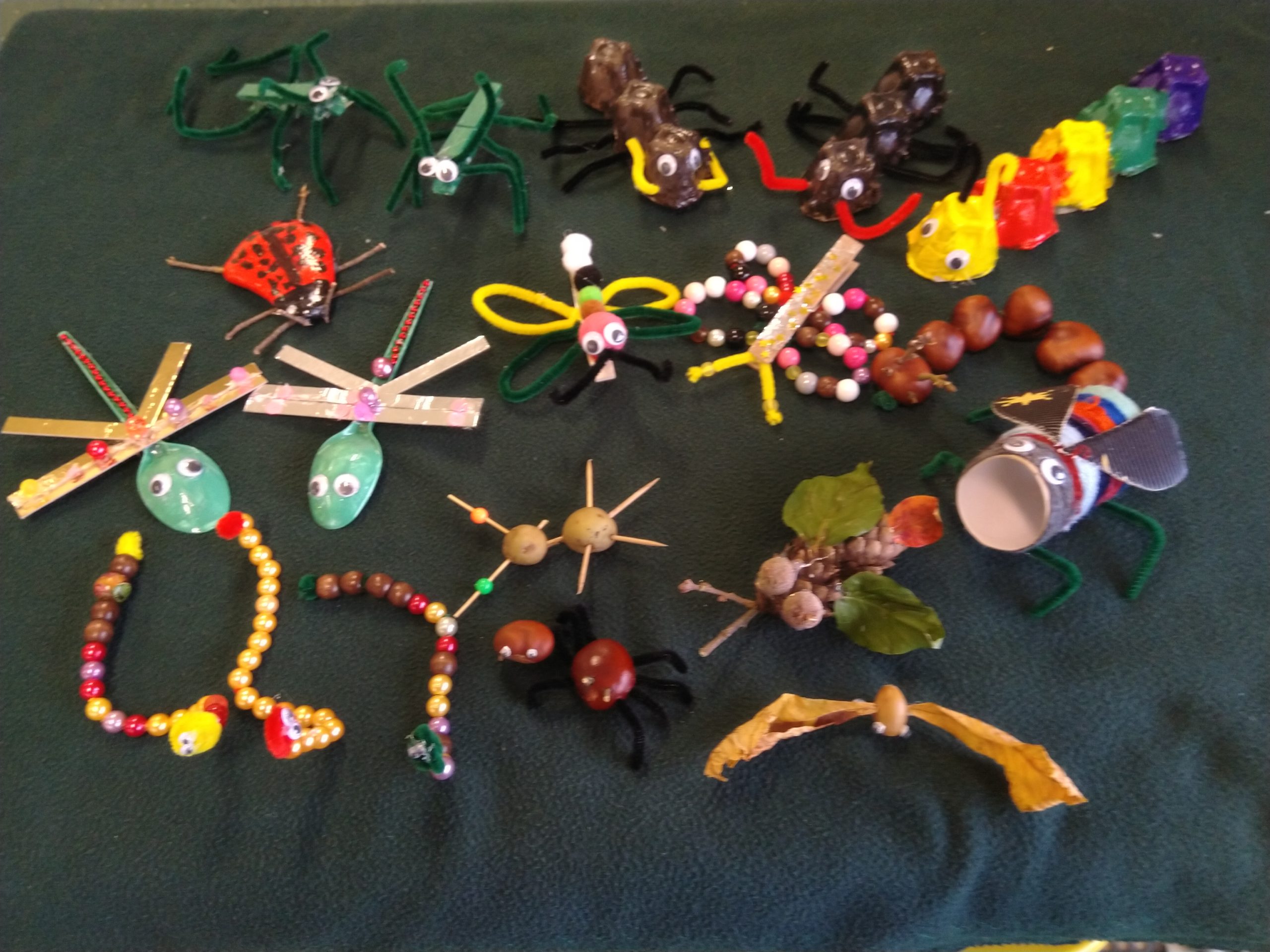 Meisterdamiseks oli lastel kasutada mitmesugust materjali: munakarbid, pesupulgad, plastmasslusikad, karvatraadid, pärlid, liikuvad silmad, aga ka tammetõrud, kastanimunad, värvilised puulehed. Igaüks valis ise, millise putuka ta tahab teha. „Kõige rohkem tehti õunausse, kusjuures ühtki rohelist õunaussi ei ole, kõik on värvilised ja pärlitega kaunistatud,“ räägib õpetaja lõbusalt. „Meisterdati ka sipelgaid, liblikaid ja rohutirtse. Üks poiss, kes pesupulgast rohutirtsu tegi, oli hästi õnnelik ja uhke, kohe oli näha, et tirts meeldib talle endale ka. Kõik mõtlesid oma putukale nime ja väikse lookese ka juurde. Putukate tegemine on andnud palju toredaid võimalusi – oleme saanud nende kohta uurida, lugeda, jutte kuulata. Lastel on olnud põnev, ja õpetajatel samuti.“